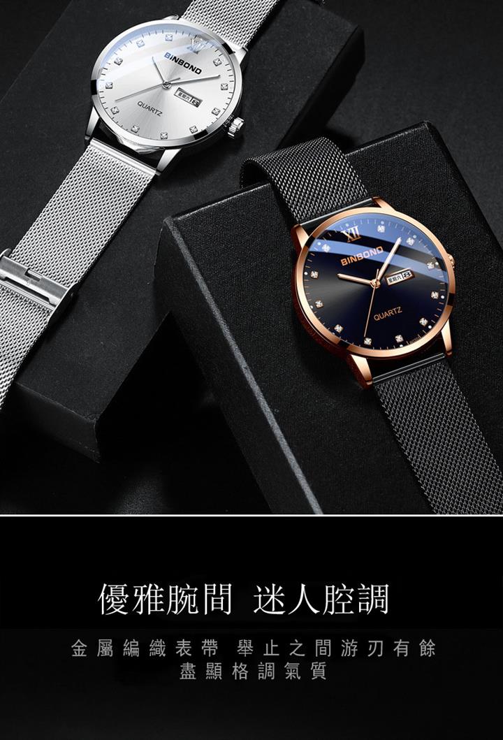 鋼帶雙日曆防水休閒腕錶 wat1836
