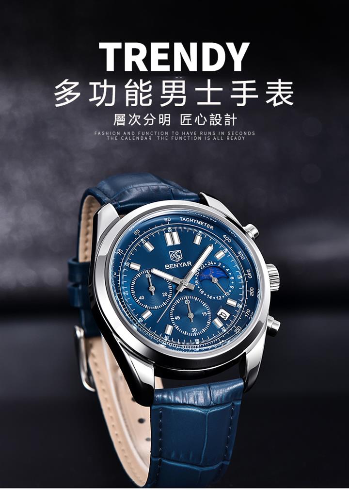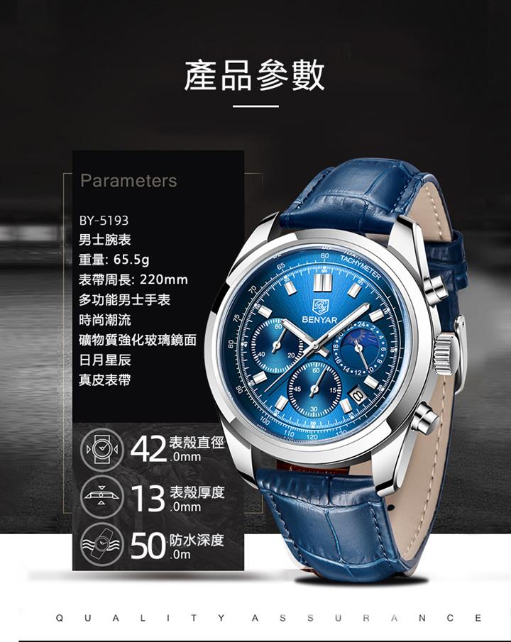 經典鸚鵡手雷帶日歷商務手表 Wat1885