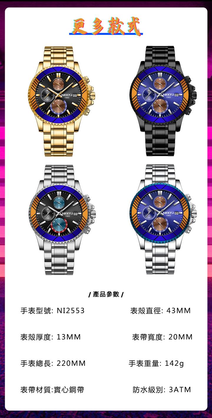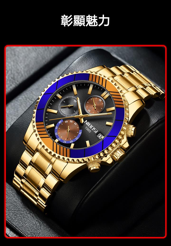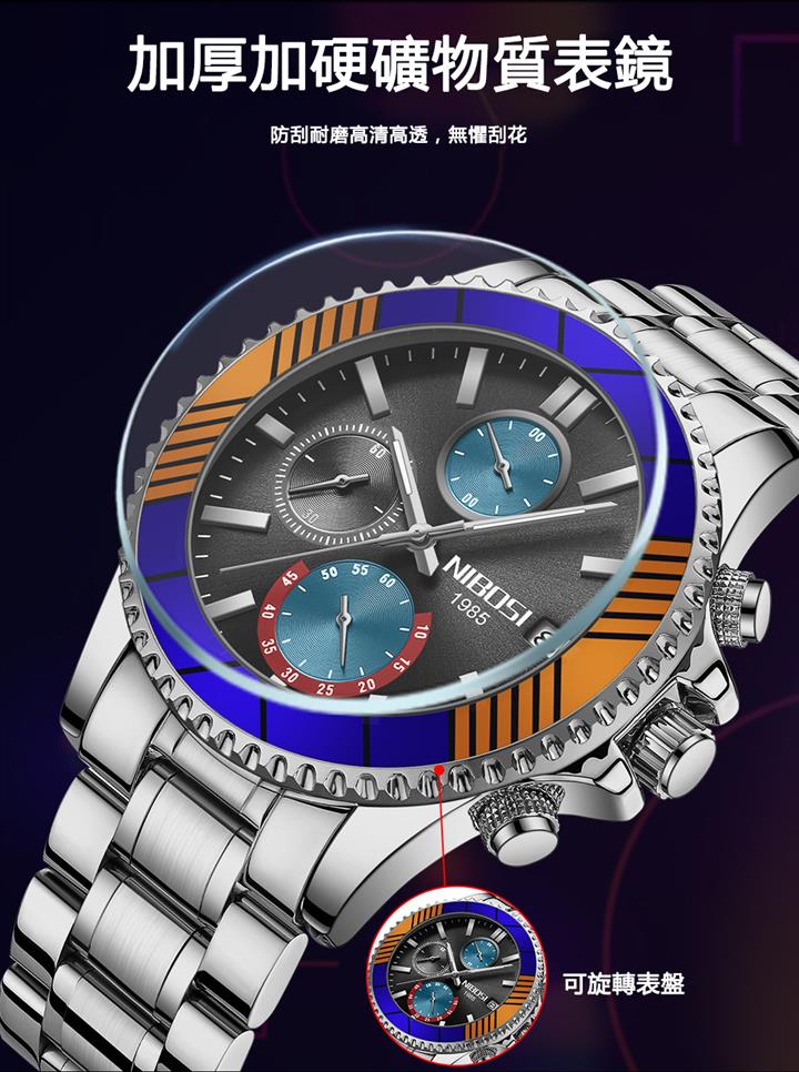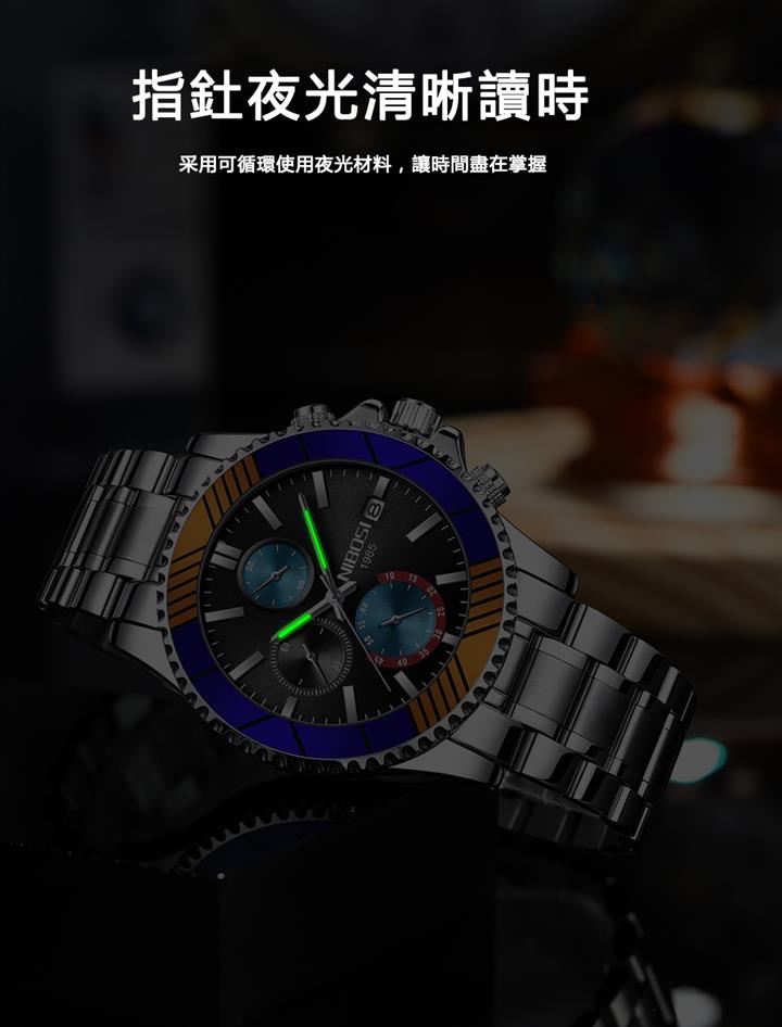 日歷男表鋼帶商務錶 Wat1925