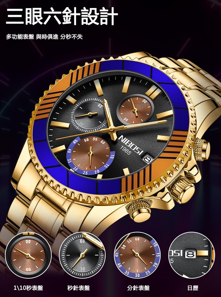 日歷鋼帶六針多功能錶 Wat1924