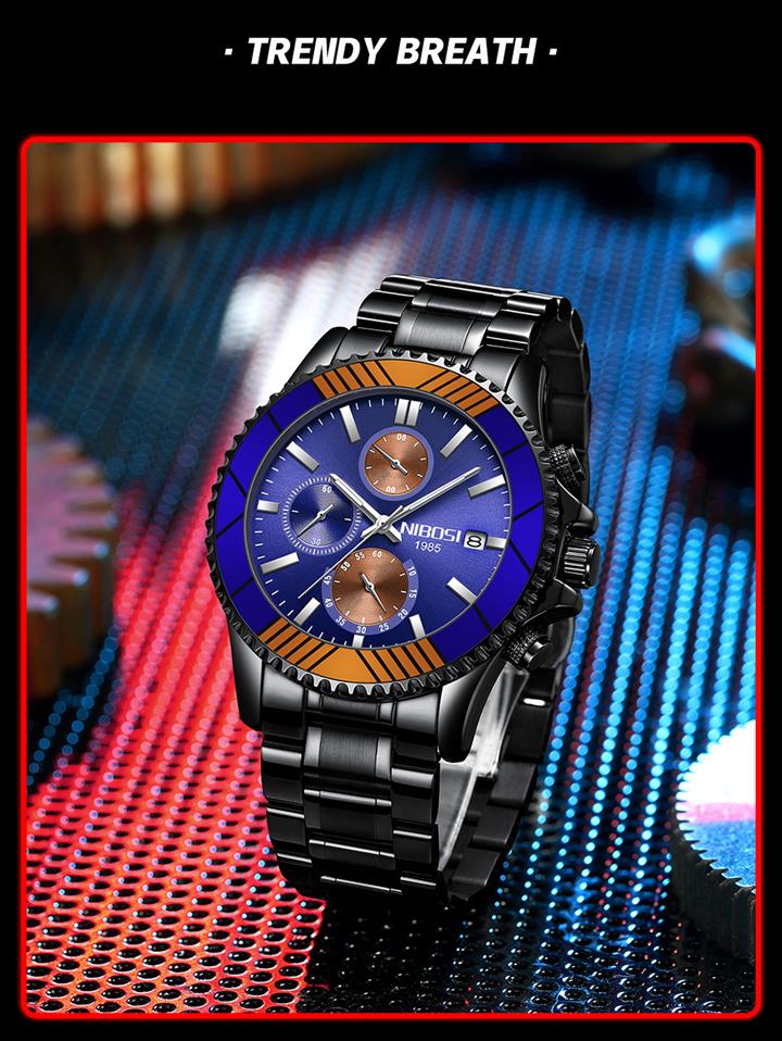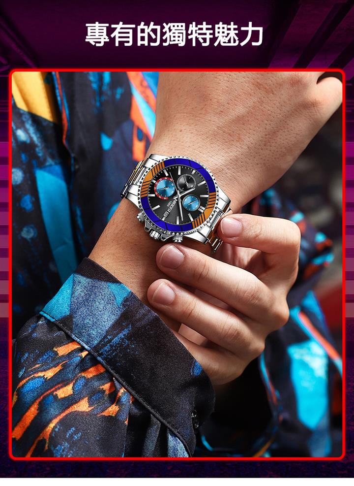 時尚彩圈鋼帶男士手表 Wat1879