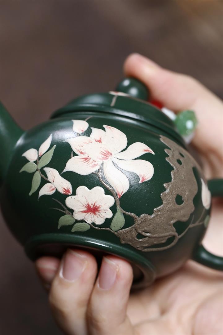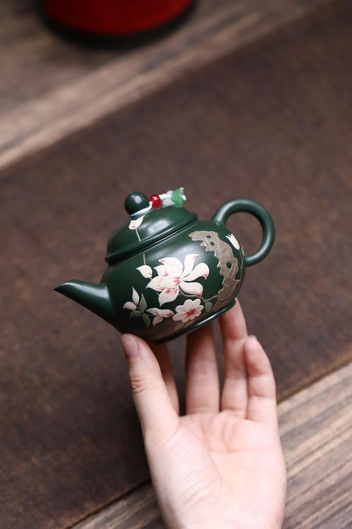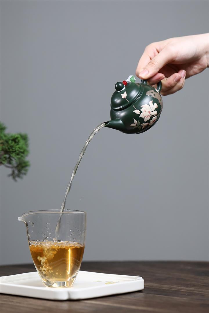 紫砂使用越久,壺身色澤越發光亮照人,氣韻溫雅。紫砂壺長久使用器身會因撫摸擦拭,變得越發溫潤光澤!
