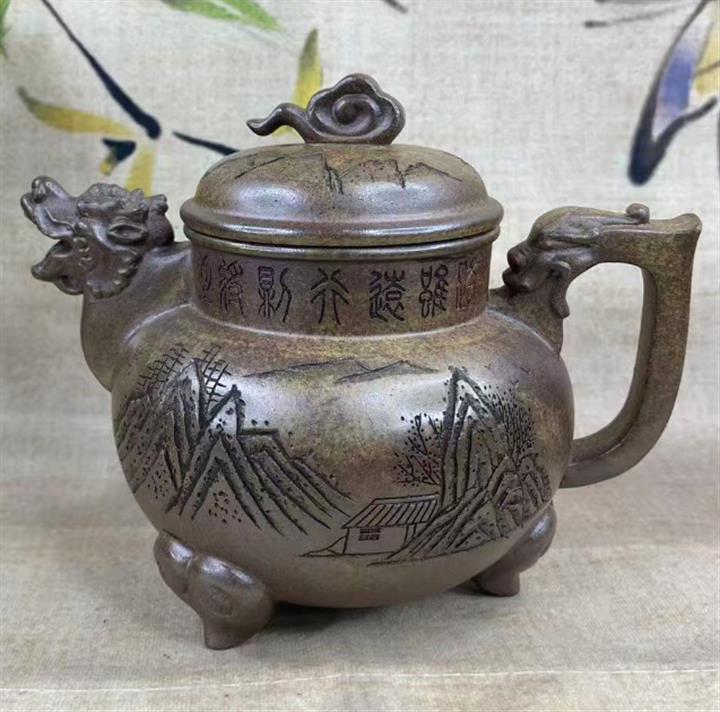 原礦古法沈香泥三足祥龍茶壺POT7507