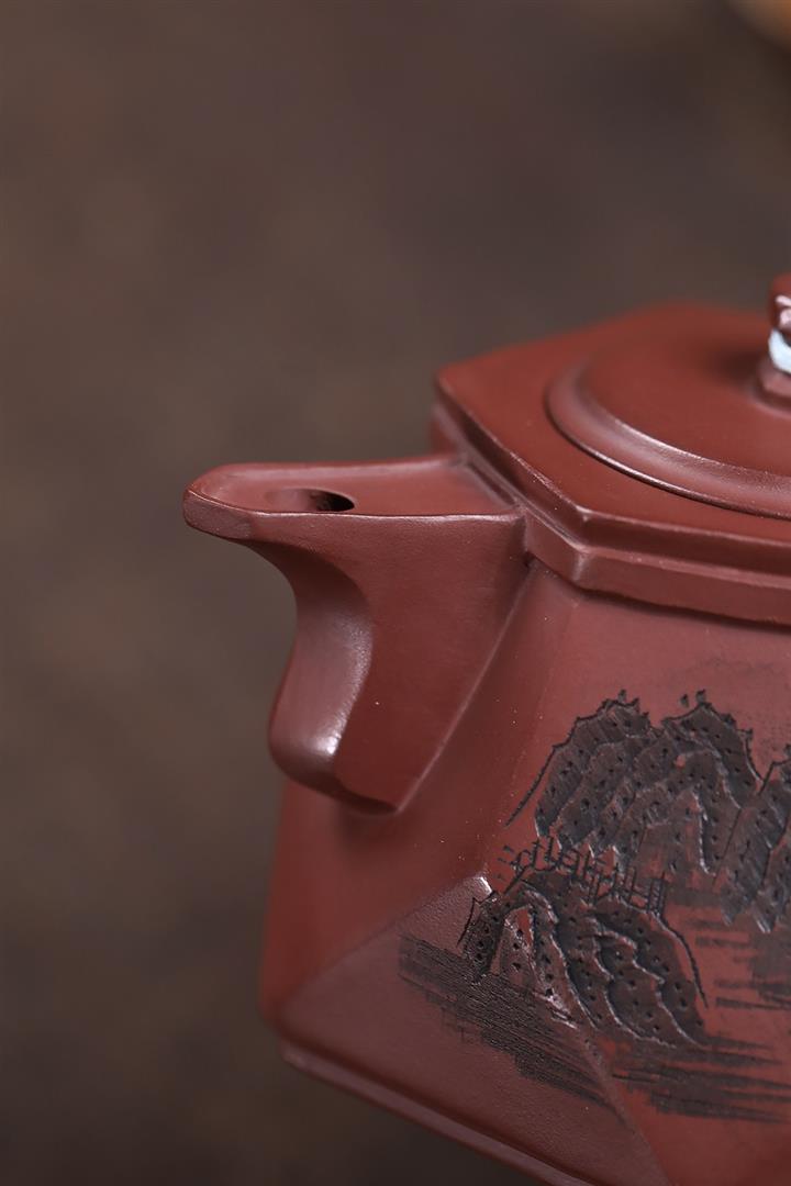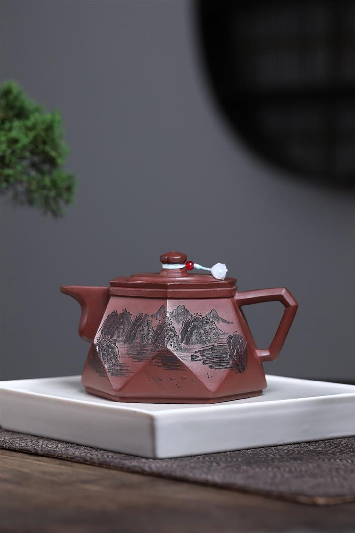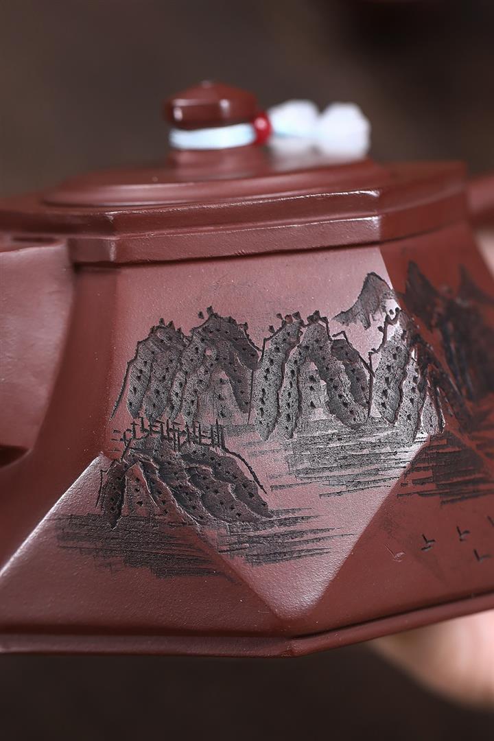 原礦朱泥泥繪秦權茶壺POT7511