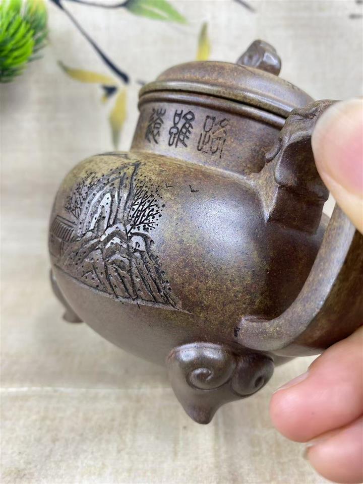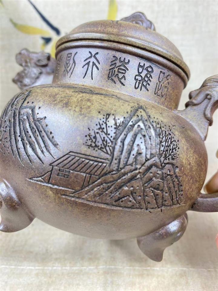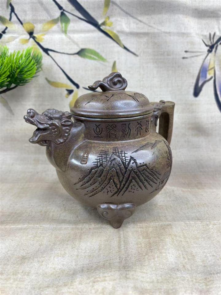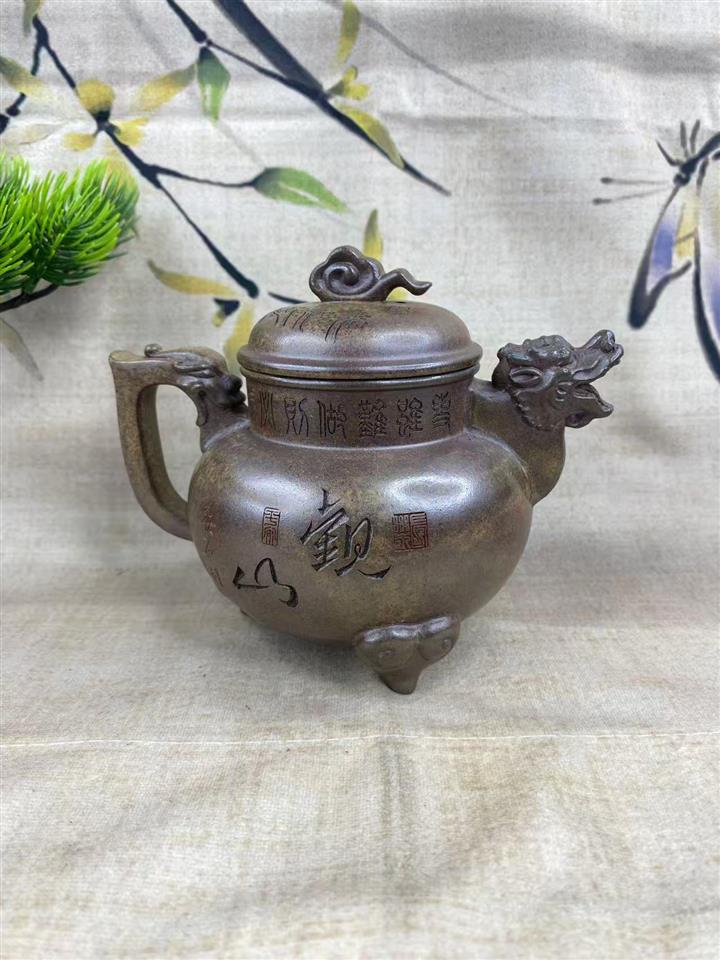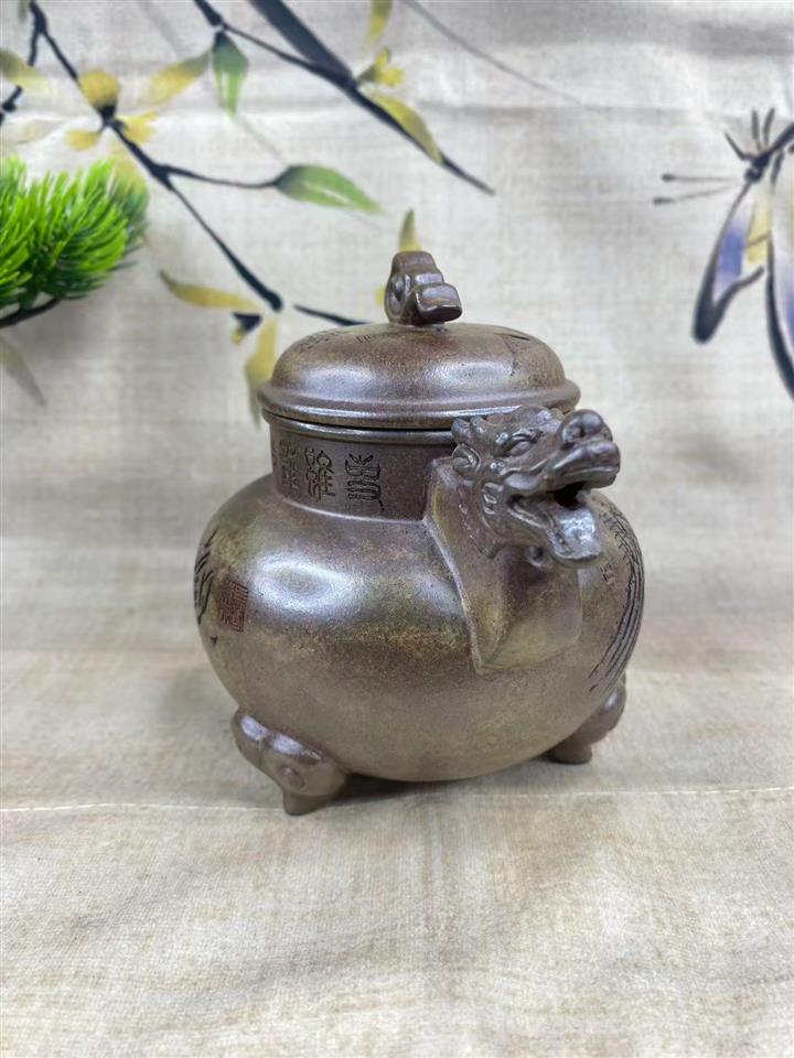 原礦古法沈香泥三足祥龍茶壺POT7507