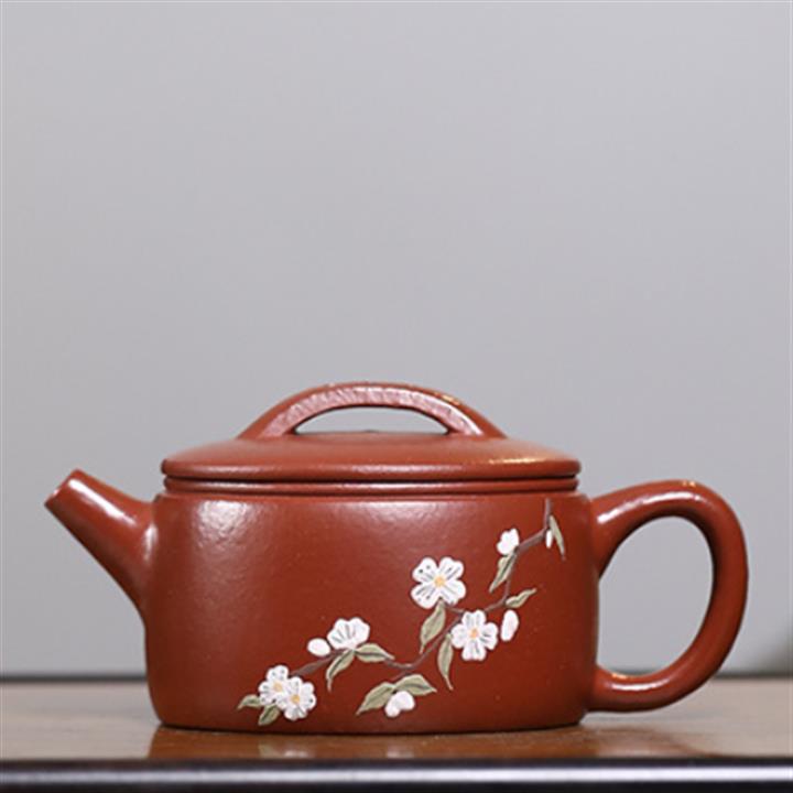原礦紫砂君子蘭刻繪漢鐸茶壺POT7517