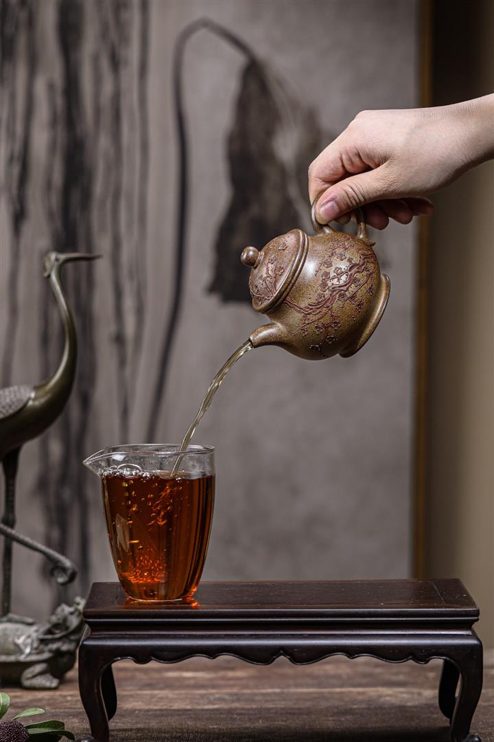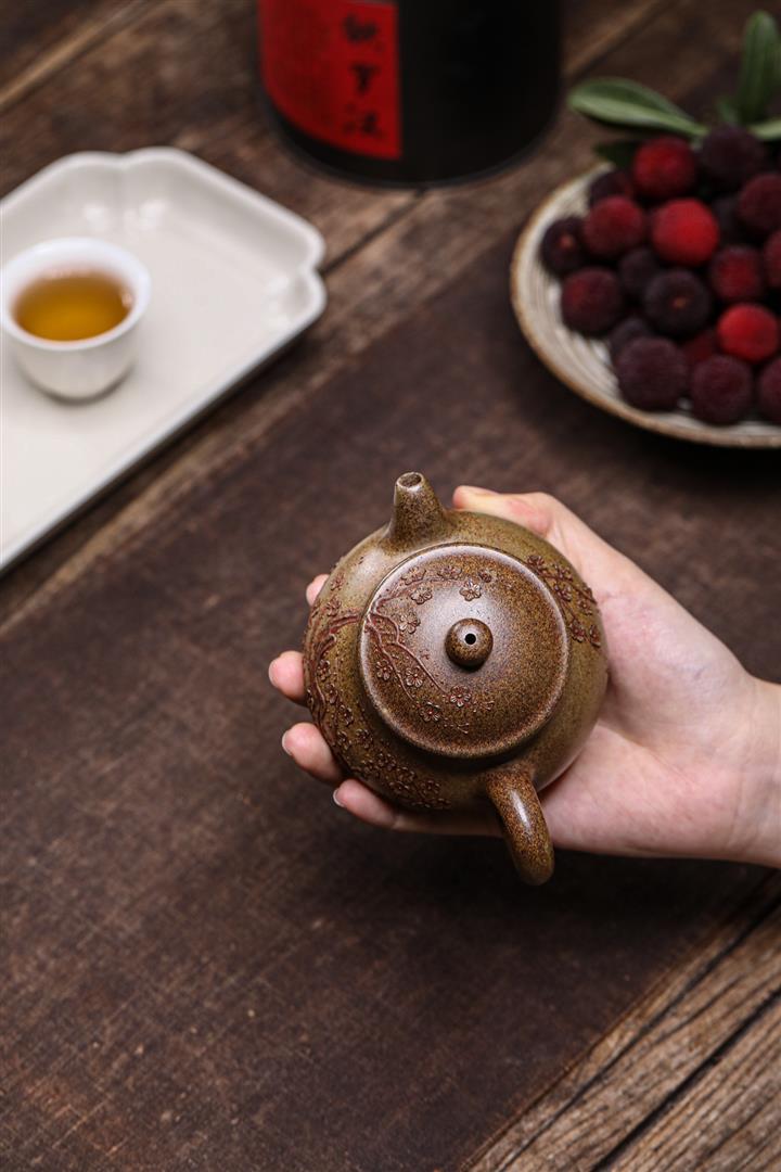 紫砂使用越久,壺身色澤越發光亮照人,氣韻溫雅。紫砂壺長久使用器身會因撫摸擦拭,變得越發溫潤光澤!