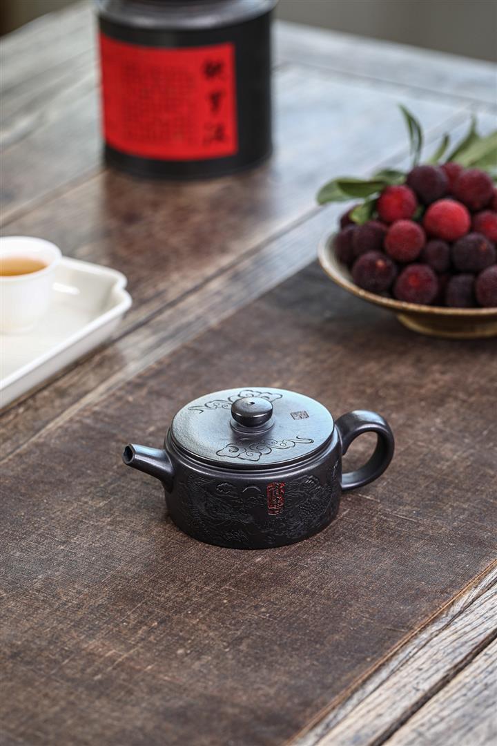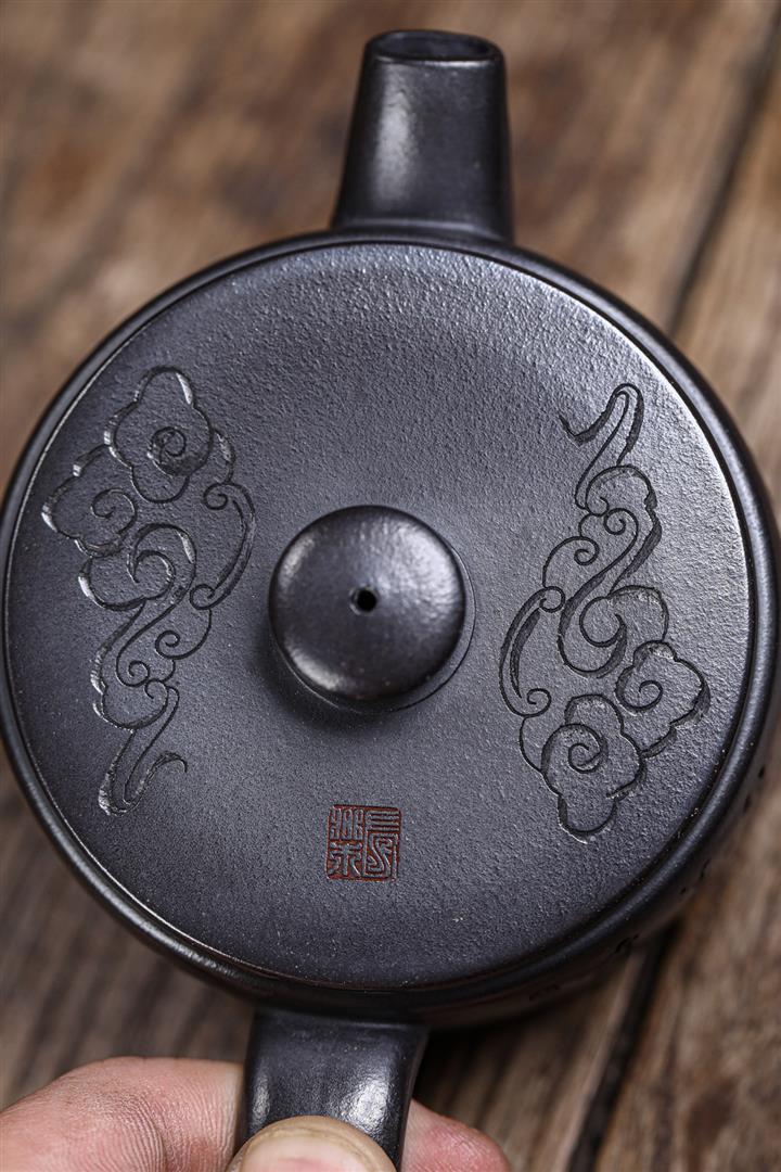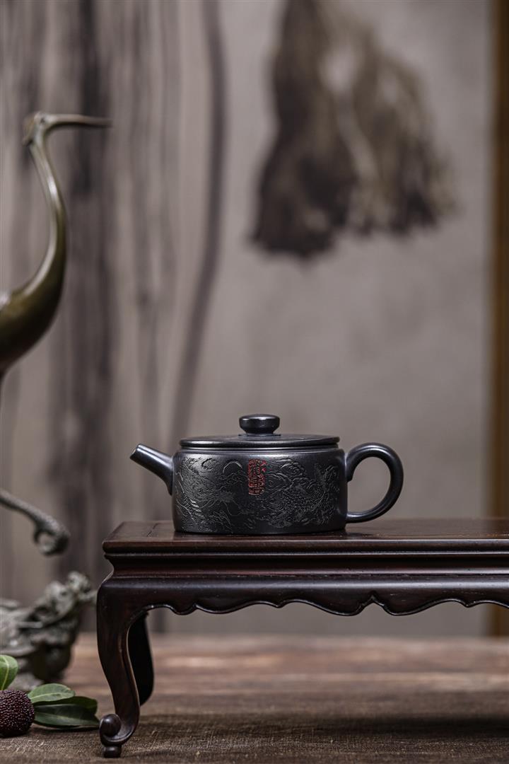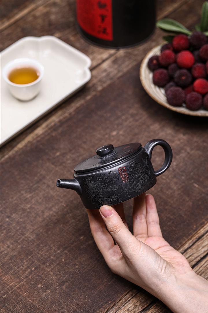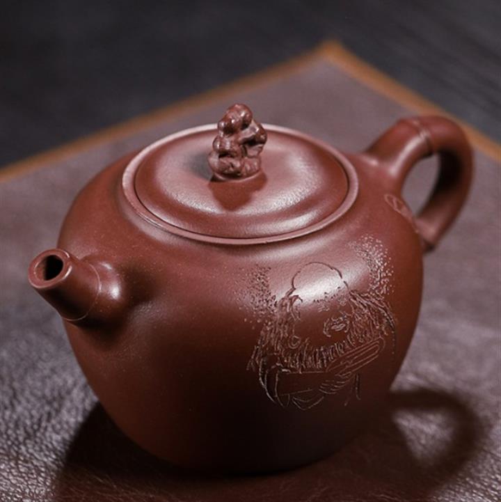 原礦紫砂君子蘭刻繪漢鐸茶壺POT7517