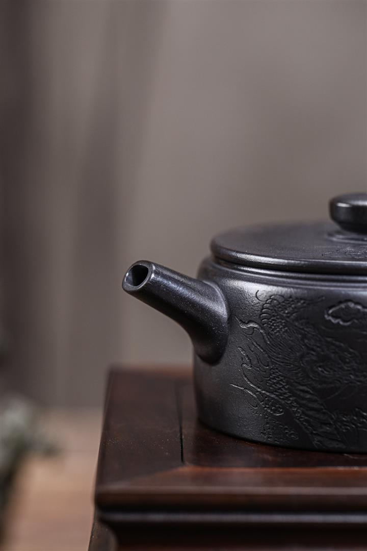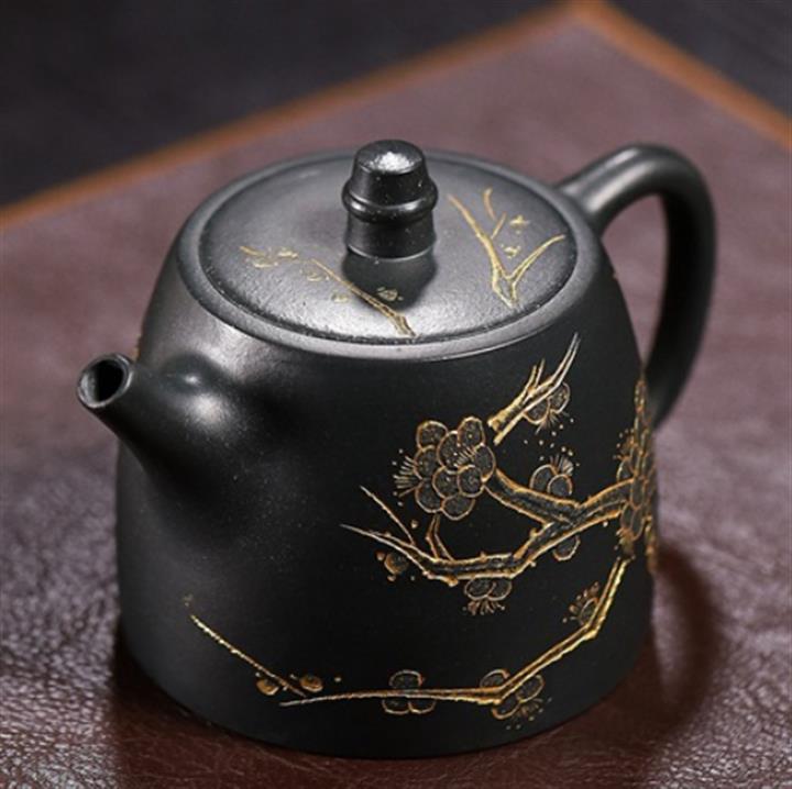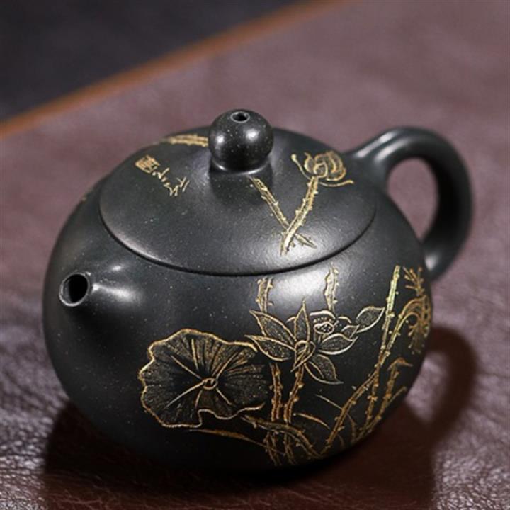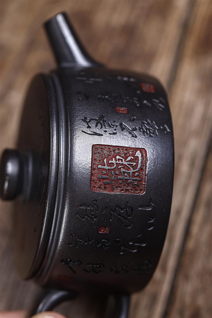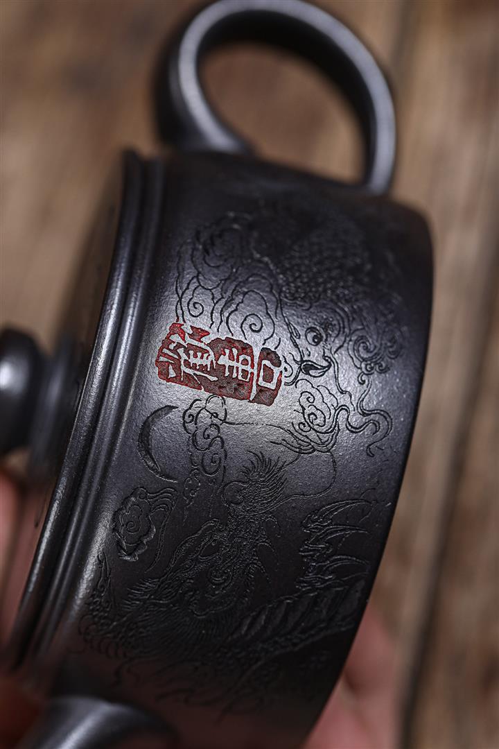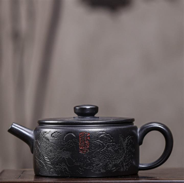 原礦紫砂君子蘭刻繪漢鐸茶壺POT7517