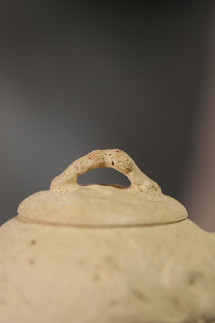 【簡介】壺身有如老樹疙瘩,癭節滿身,不但突顯出其精工細作,亦展現出其深厚的制作功底。該壺色澤古樸,壺鈕為橋形,仿佛壹根老樹枝的造型,與壺身相映成趣。截蓋設計,壺身上下渾然壹體,整器展現了作者精湛的技藝,值得擁有。