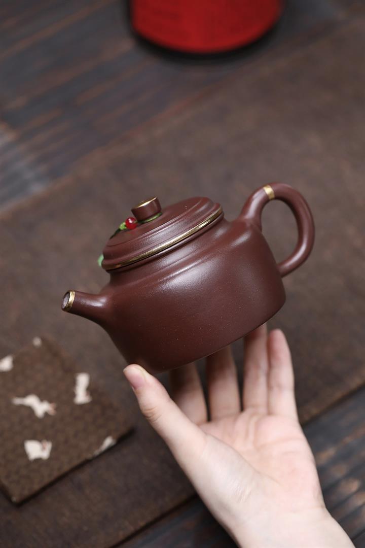 原礦紫泥泥繪暗香如意茶壺POT7531