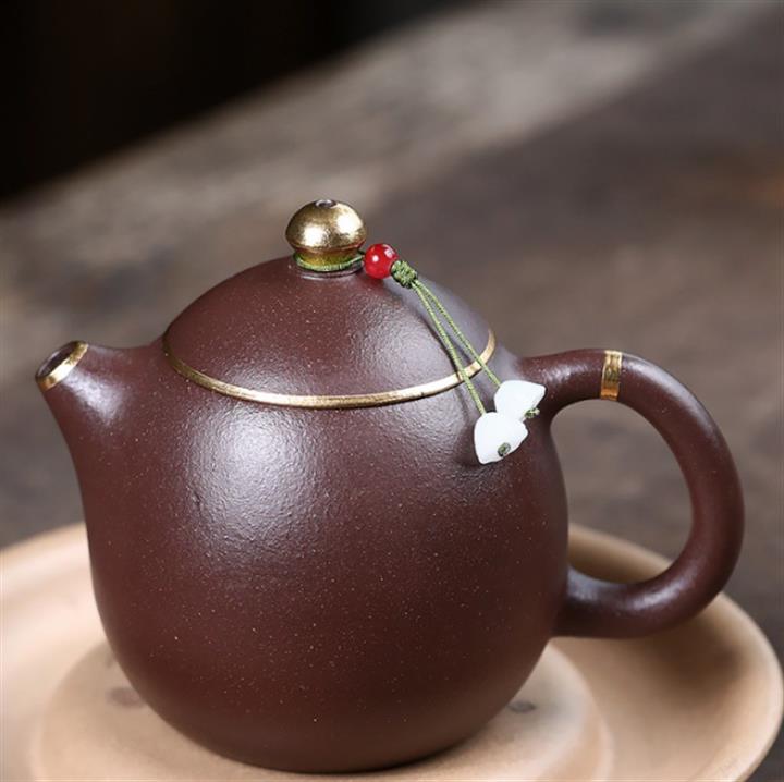 原礦粗砂紫泥描金龍蛋茶壺POT7530