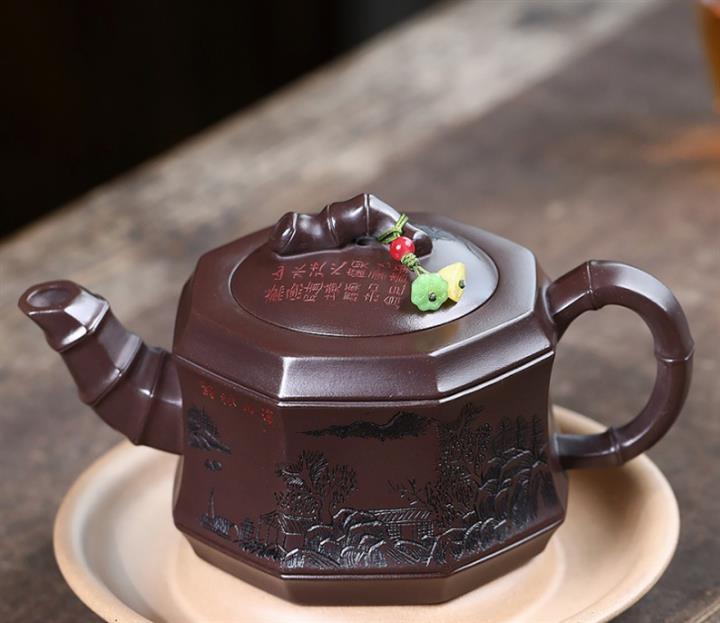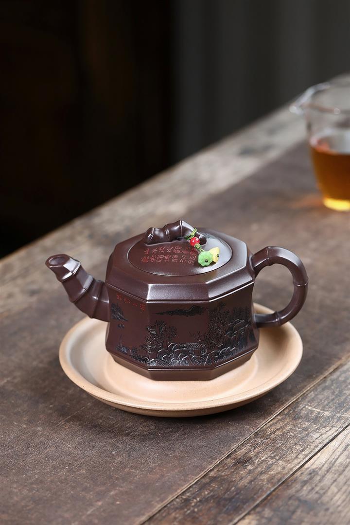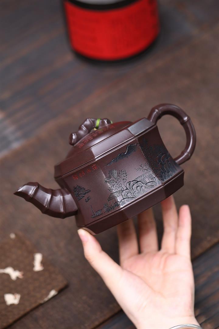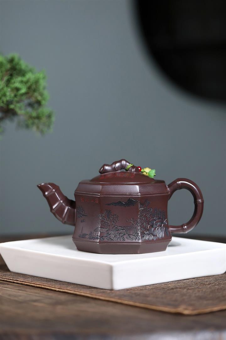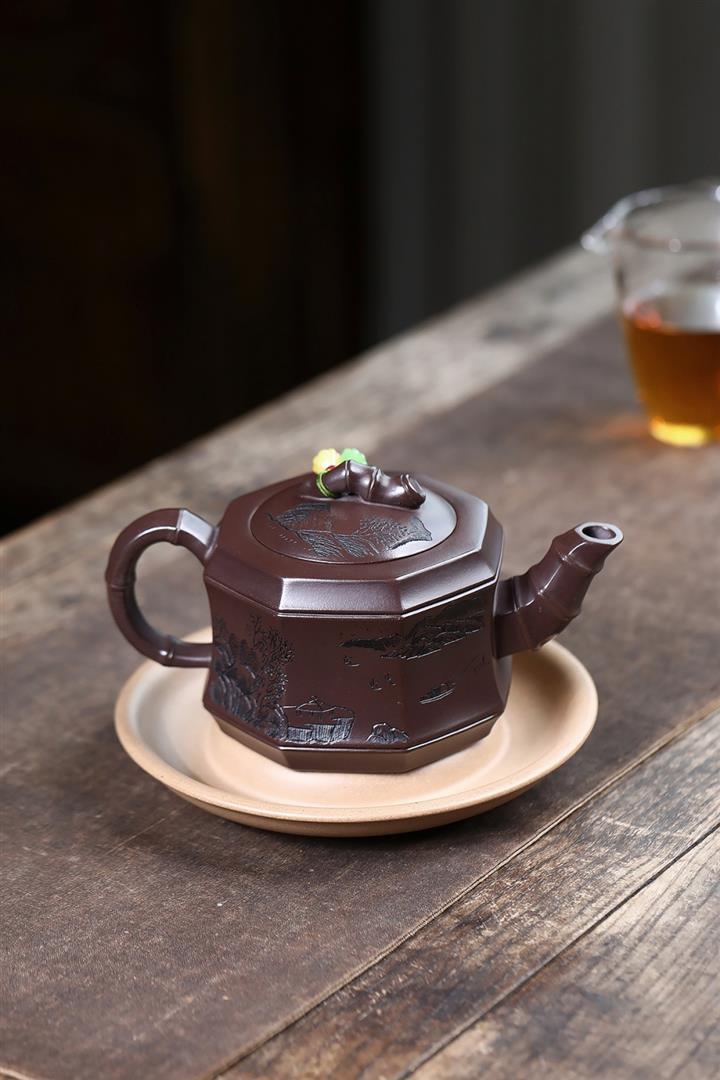 原礦赤龍血砂八方山水竹段茶壺POT7533