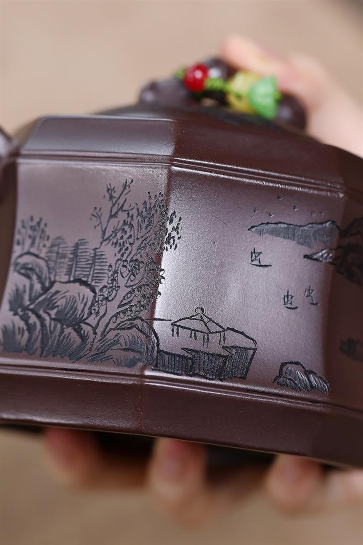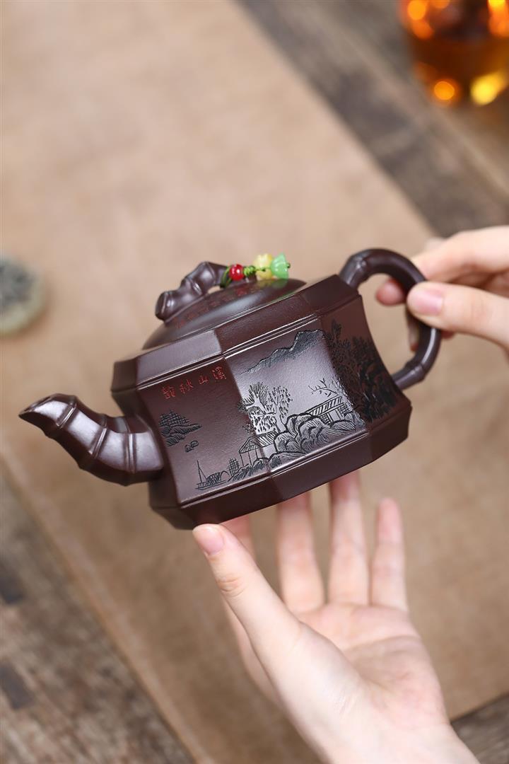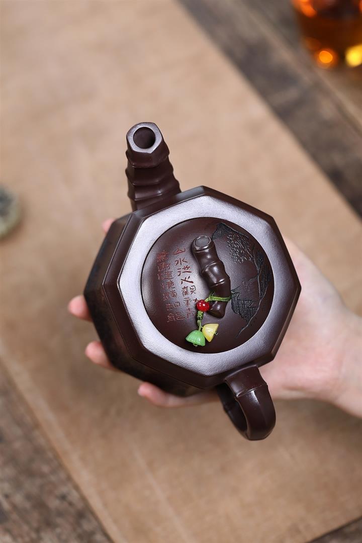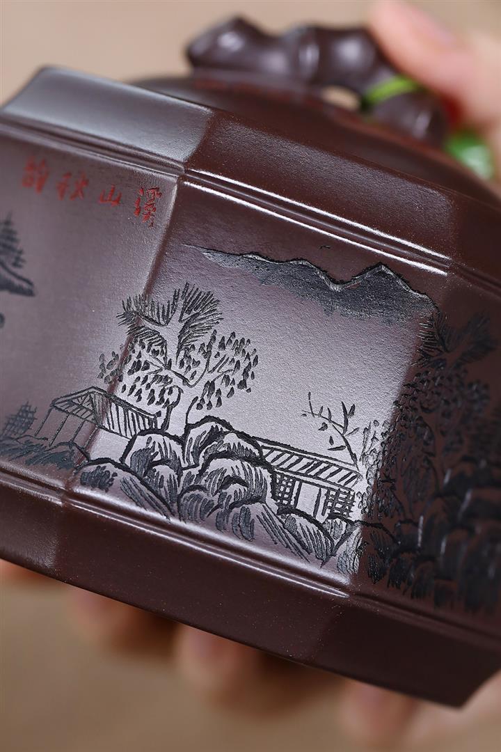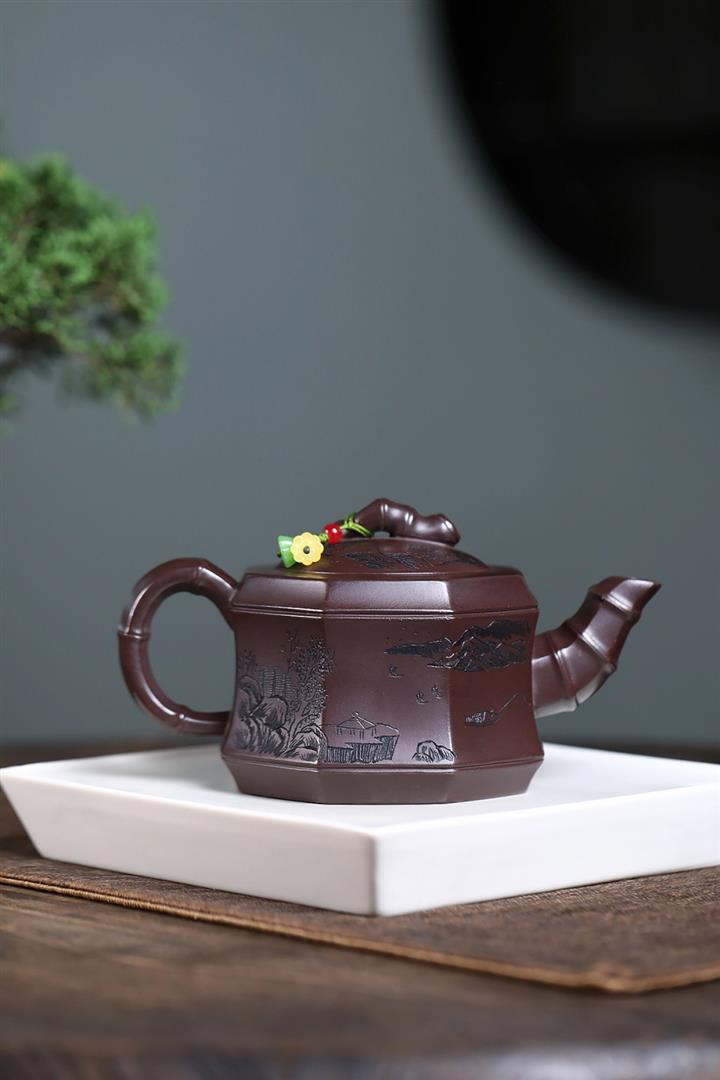 原礦赤龍血砂八方山水竹段茶壺POT7533
