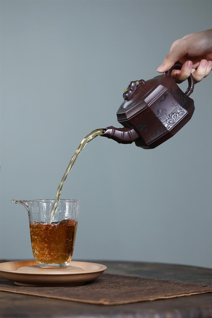 紫砂使用越久,壺身色澤越發光亮照人,氣韻溫雅。紫砂壺長久使用器身會因撫摸擦拭,變得越發溫潤光澤!