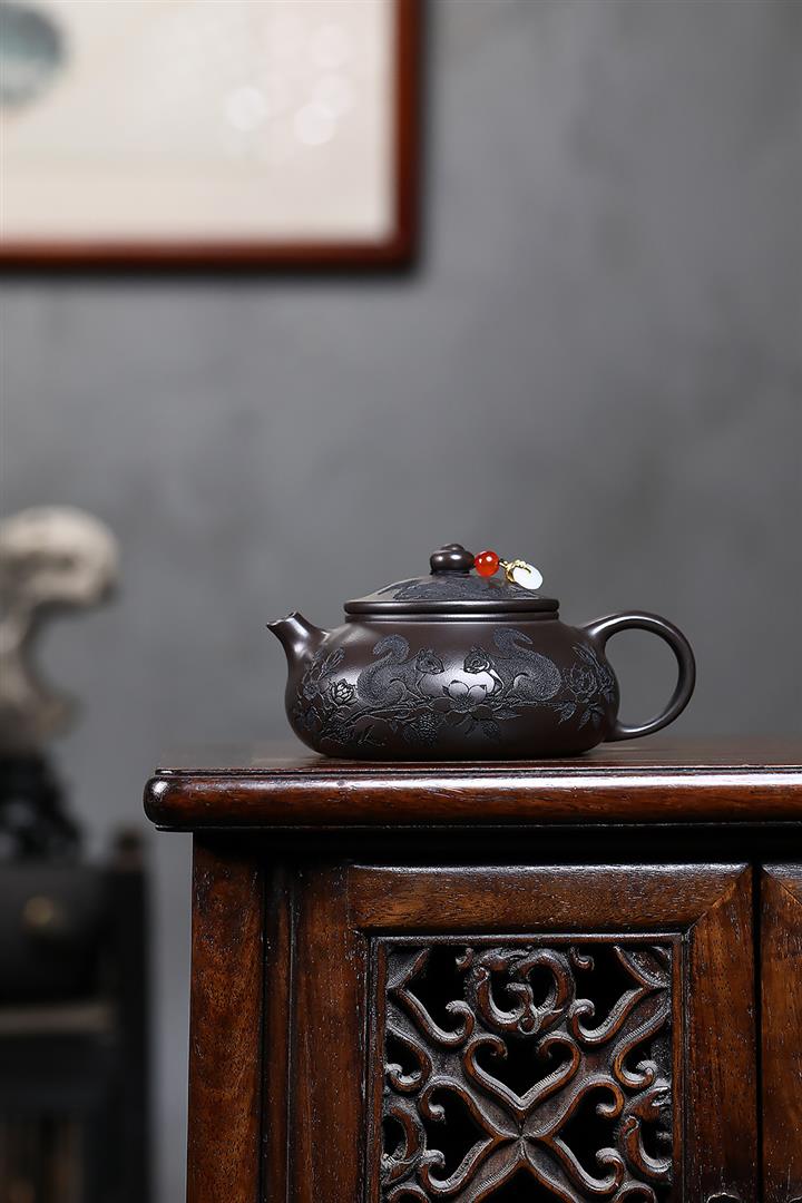 原礦玄鐵石黃松鼠寒江茶壺POT7541