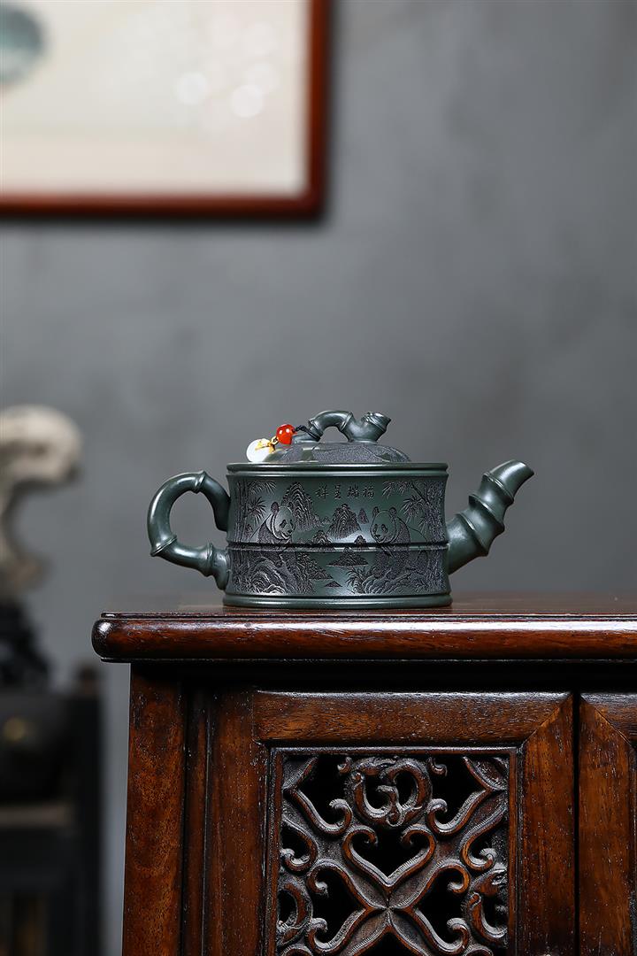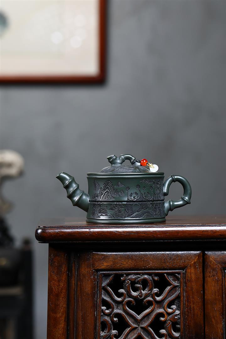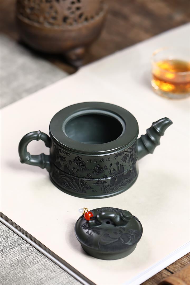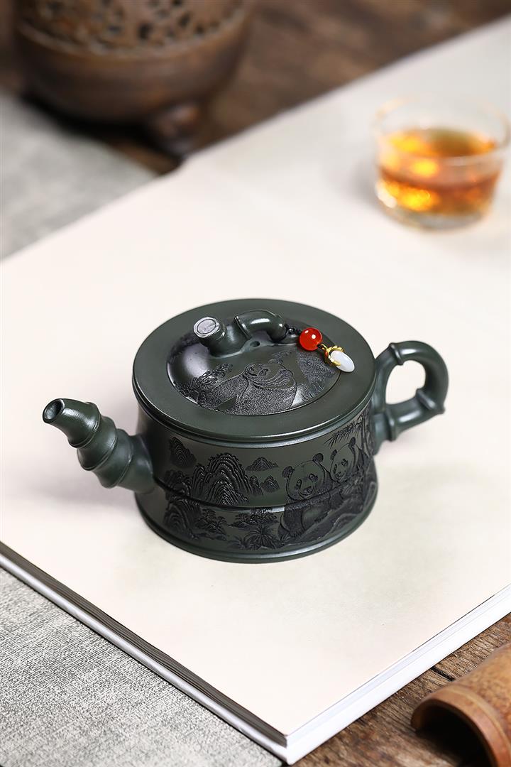 原礦墨綠泥熊貓壹品竹段茶壺POT7542