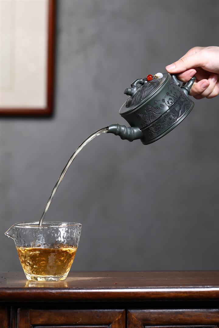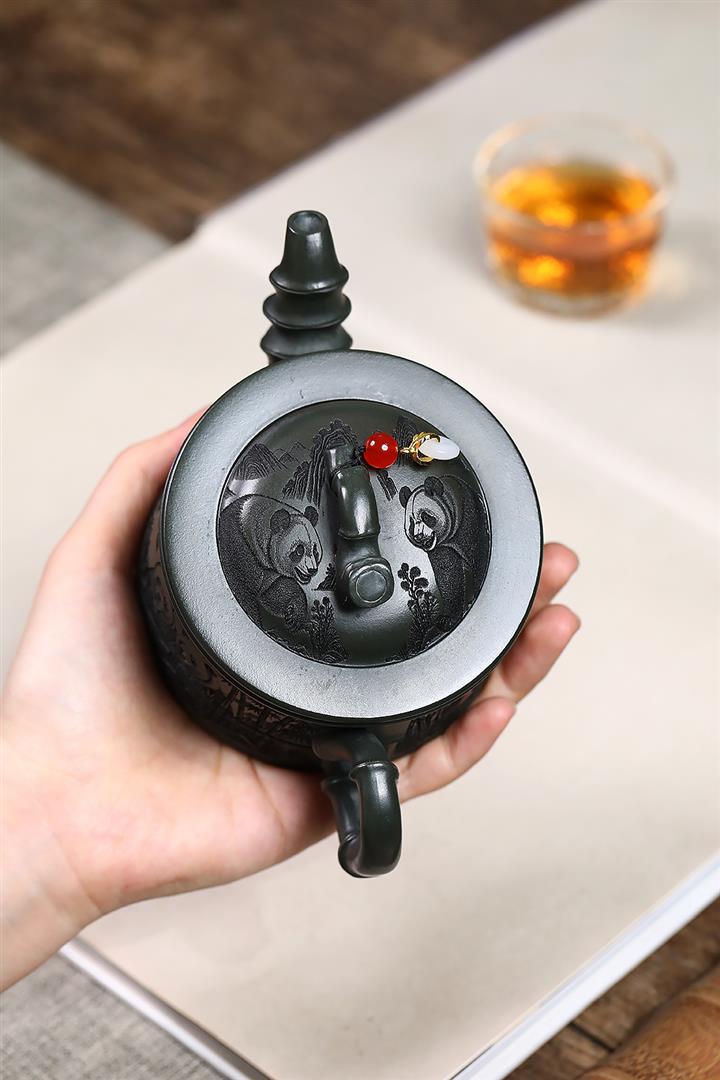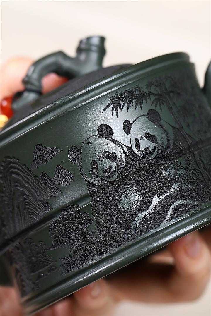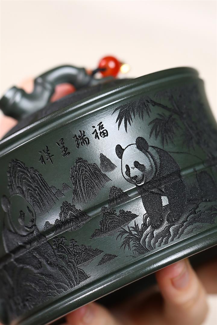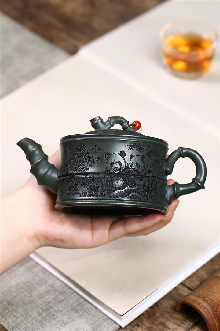 原礦墨綠泥熊貓壹品竹段茶壺POT7542