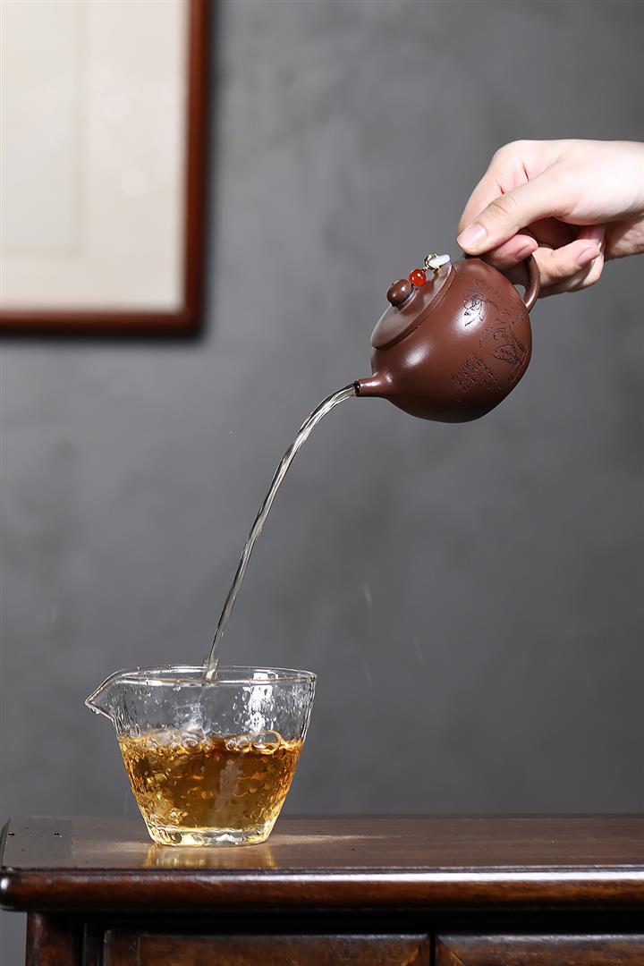 紫砂使用越久,壺身色澤越發光亮照人,氣韻溫雅。紫砂壺長久使用器身會因撫摸擦拭,變得越發溫潤光澤!