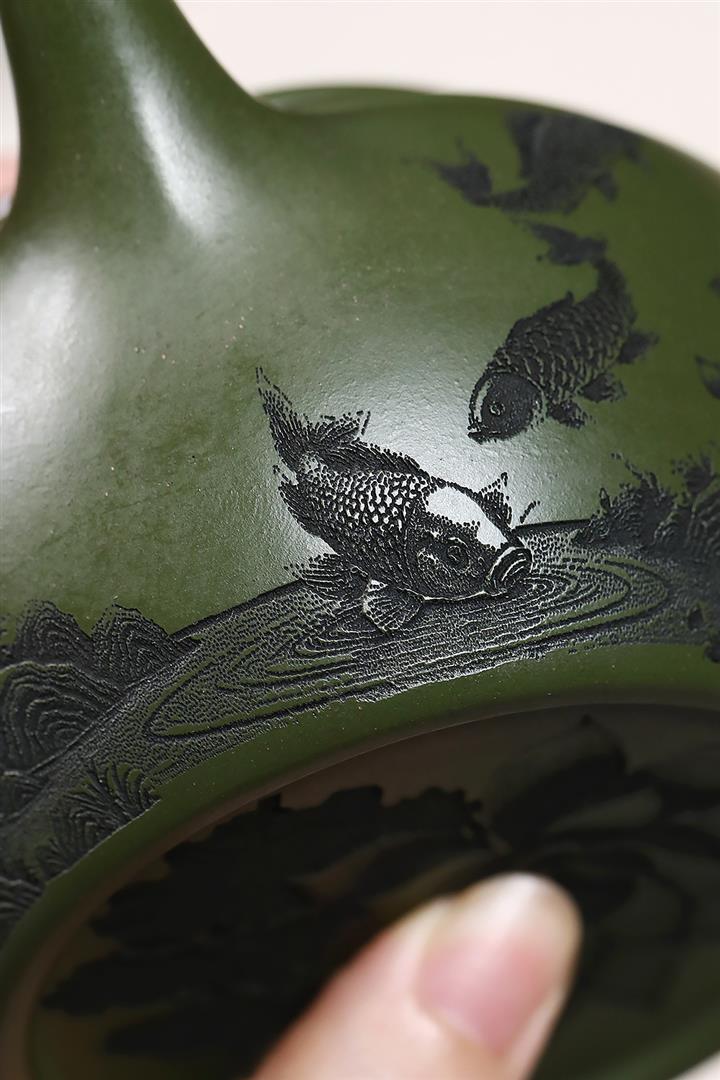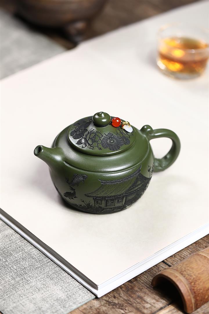 原礦綠泥蓮年有魚茶壺POT7544