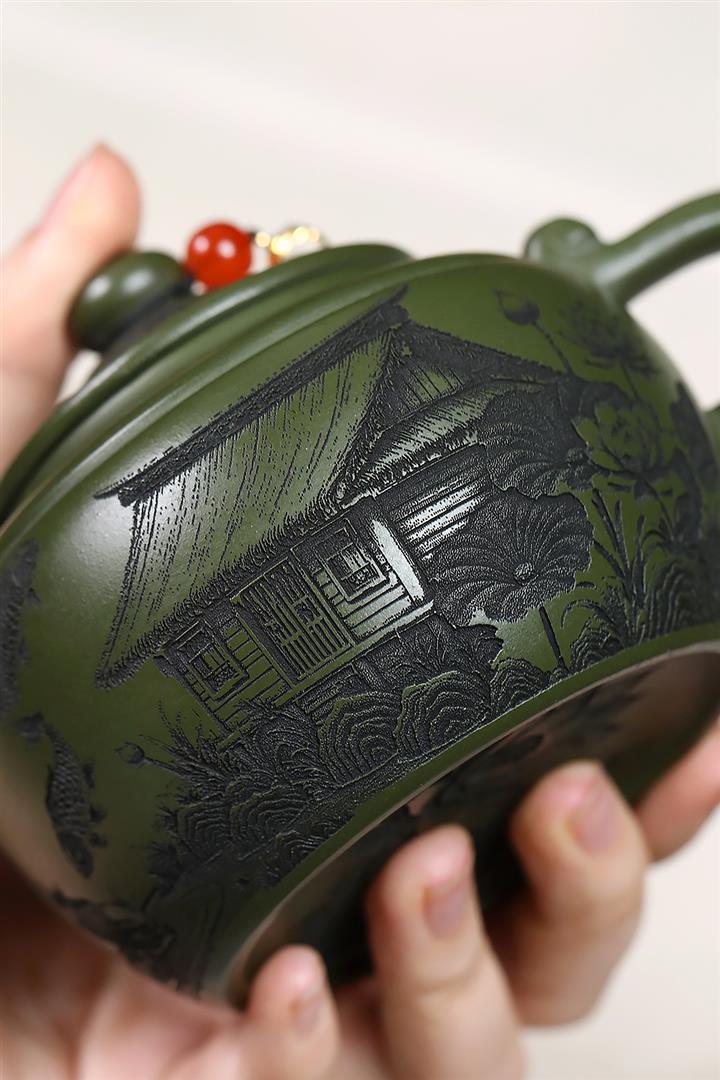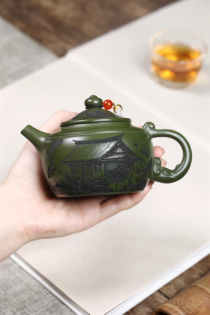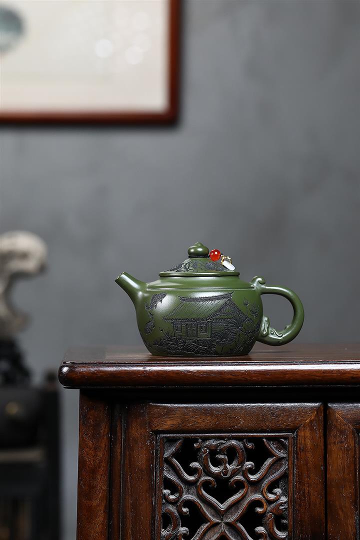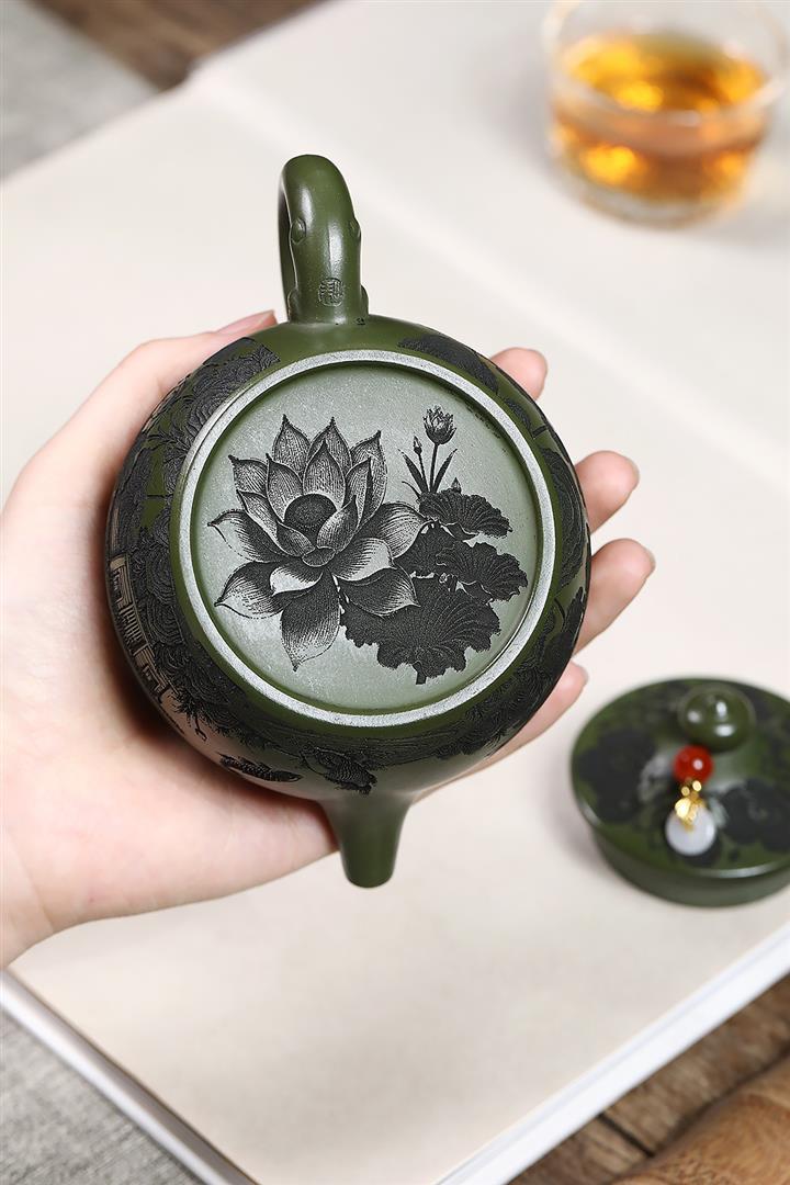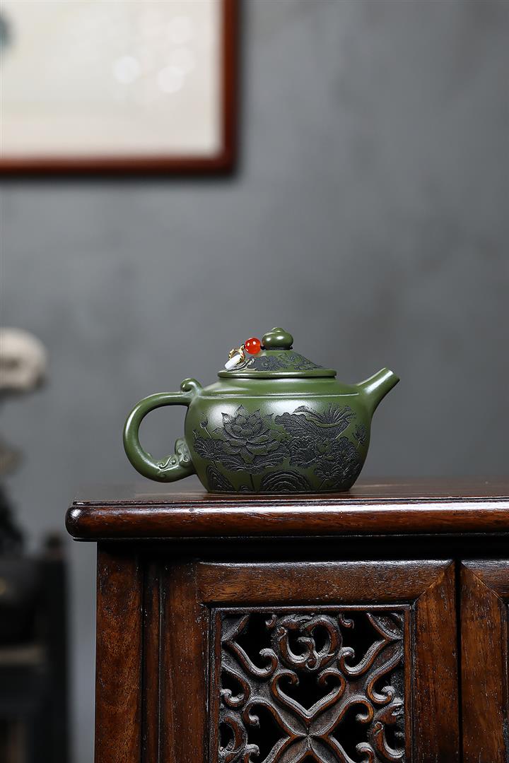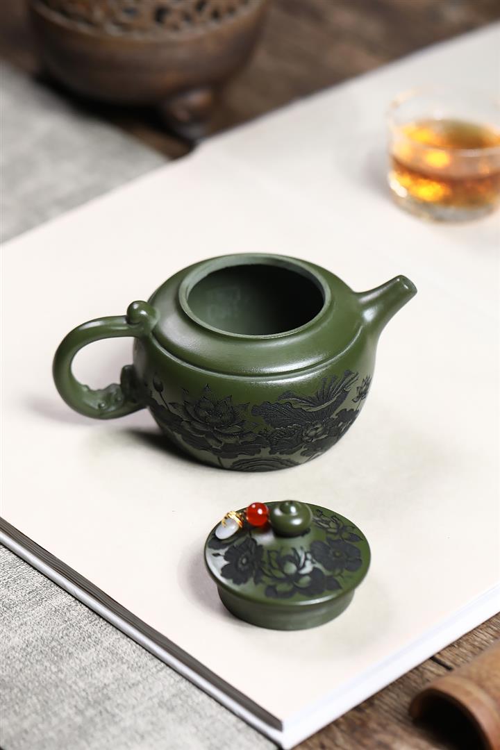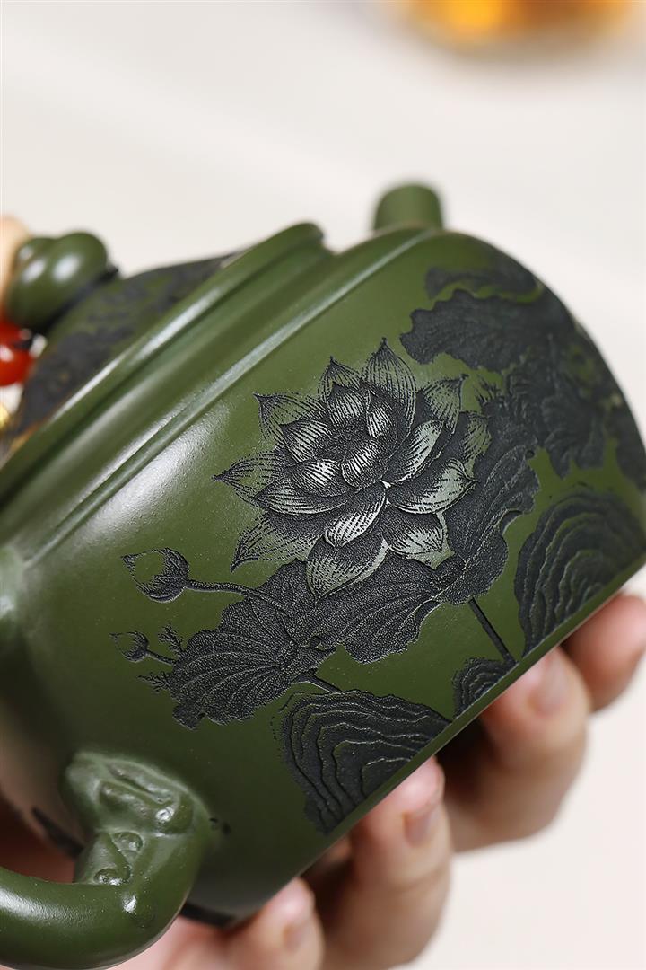 原礦綠泥靜待花開蓮子茶壺POT7550
