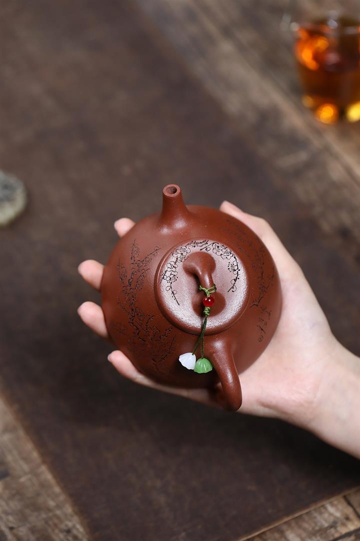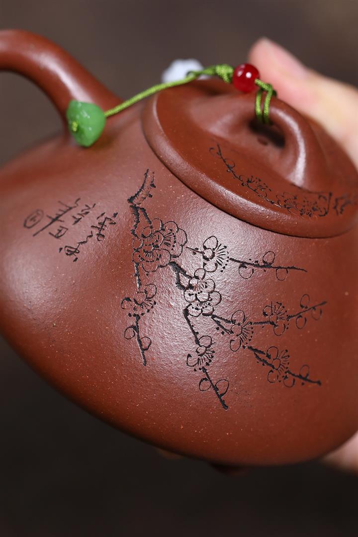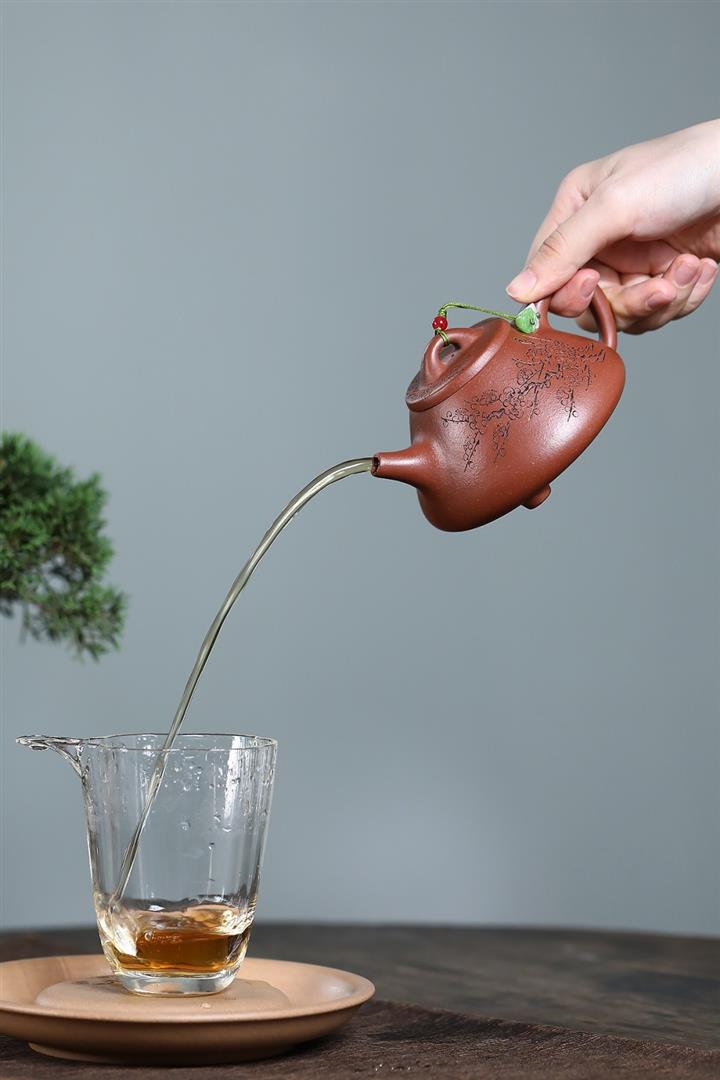 紫砂使用越久,壺身色澤越發光亮照人,氣韻溫雅。紫砂壺長久使用器身會因撫摸擦拭,變得越發溫潤光澤!