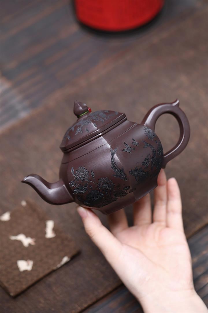 紫砂使用越久,壺身色澤越發光亮照人,氣韻溫雅。紫砂壺長久使用器身會因撫摸擦拭,變得越發溫潤光澤!