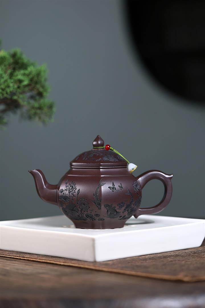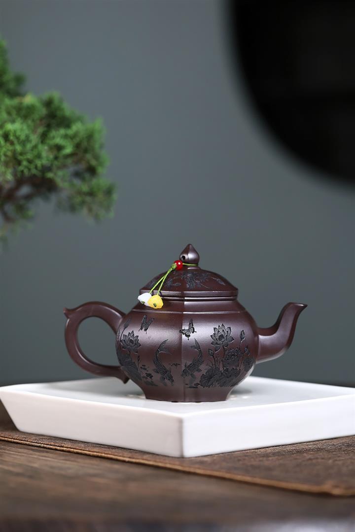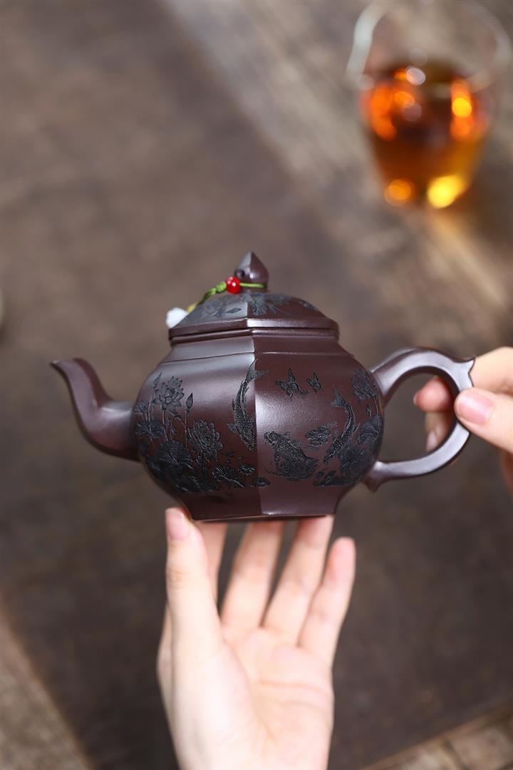 原礦赤龍血砂魚趣六方宮燈茶壺POT7555