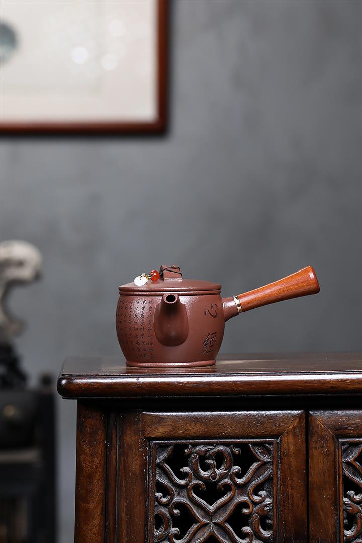 紫砂使用越久,壺身色澤越發光亮照人,氣韻溫雅。紫砂壺長久使用器身會因撫摸擦拭,變得越發溫潤光澤!