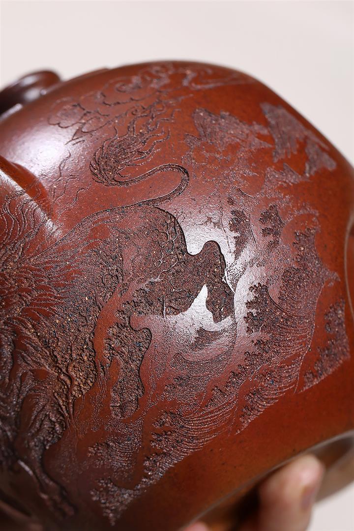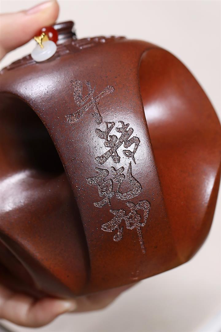 【作品介紹】作品深蘊內涵,做工細致典雅,型用完備,器形端莊穩重,比例協調,結構嚴謹,泥色潤澤。