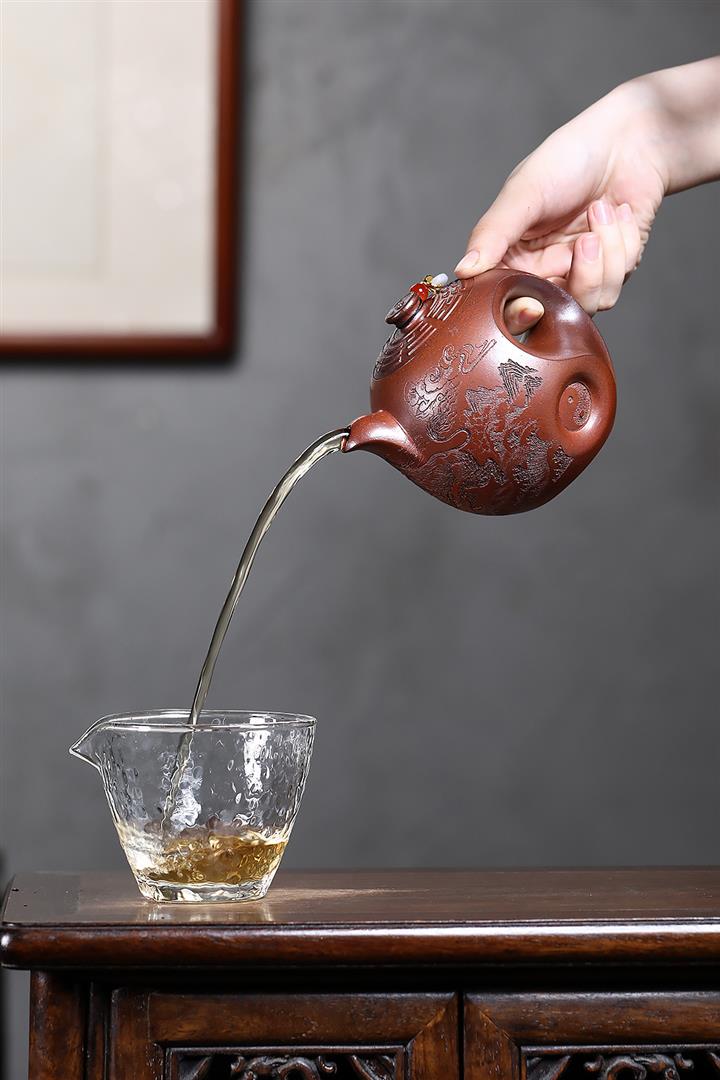 紫砂使用越久,壺身色澤越發光亮照人,氣韻溫雅。紫砂壺長久使用器身會因撫摸擦拭,變得越發溫潤光澤!