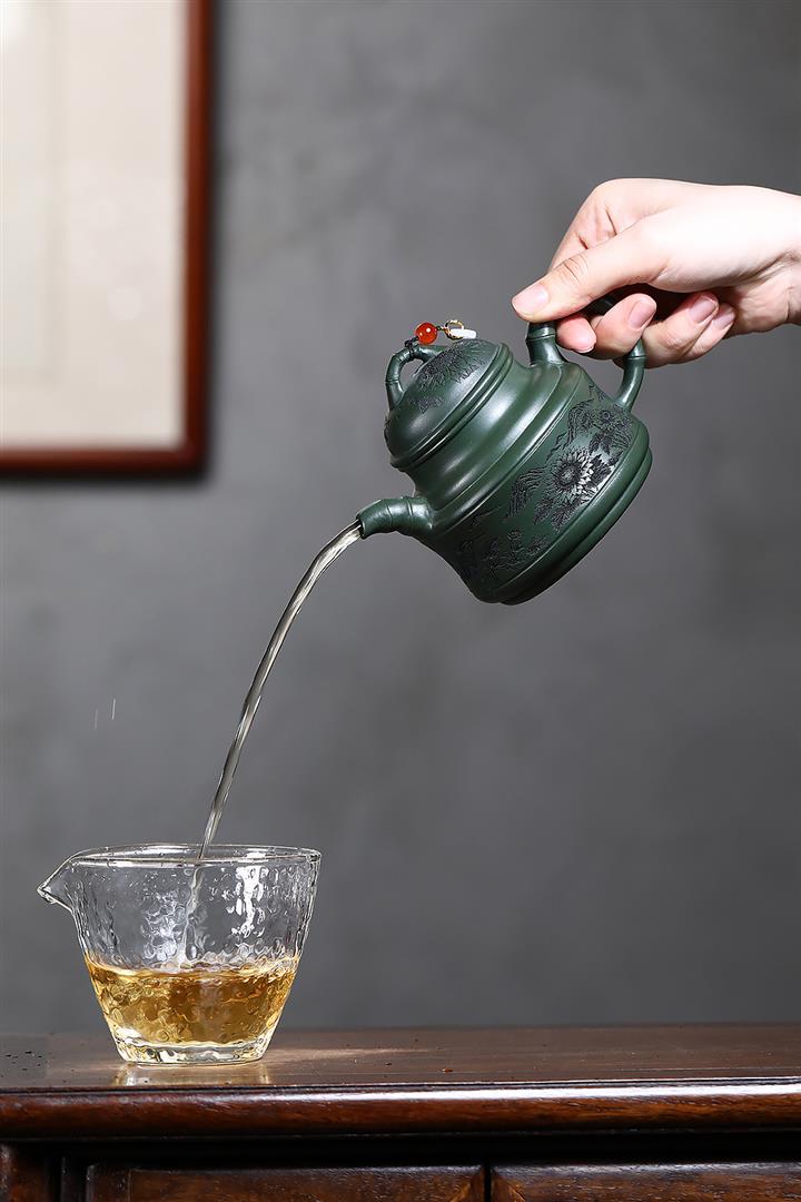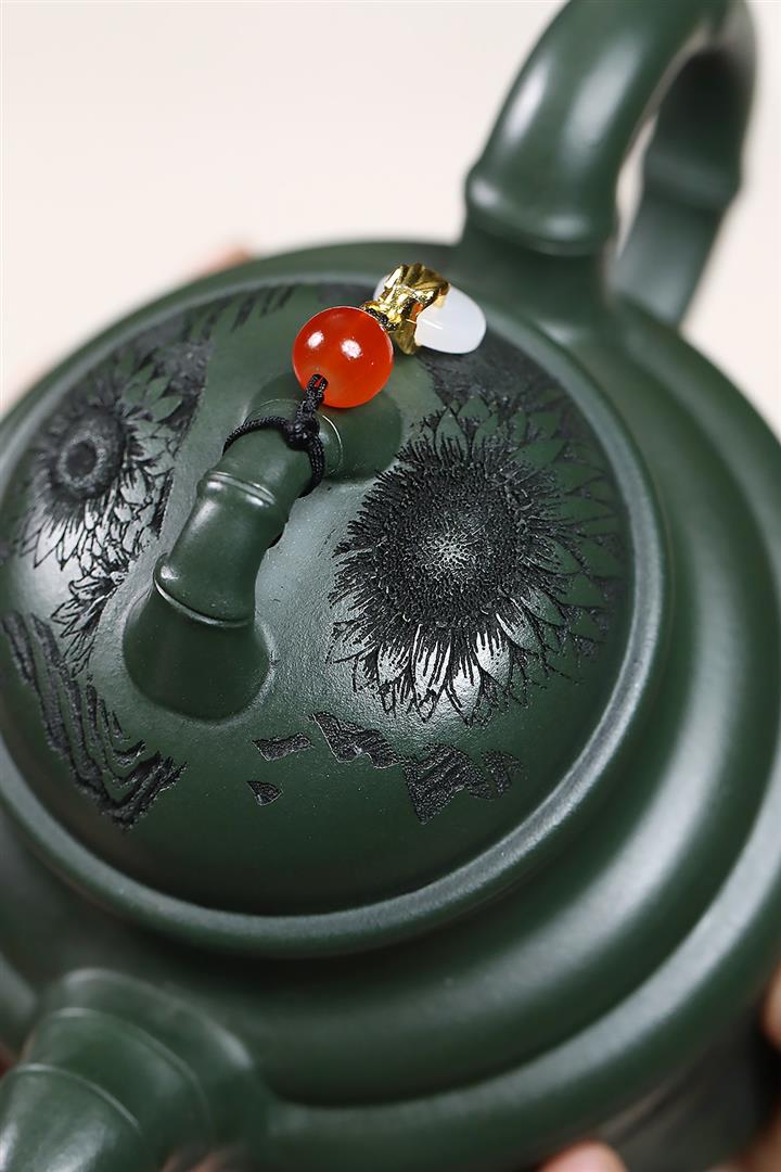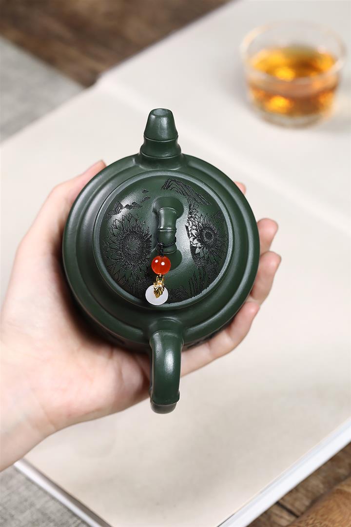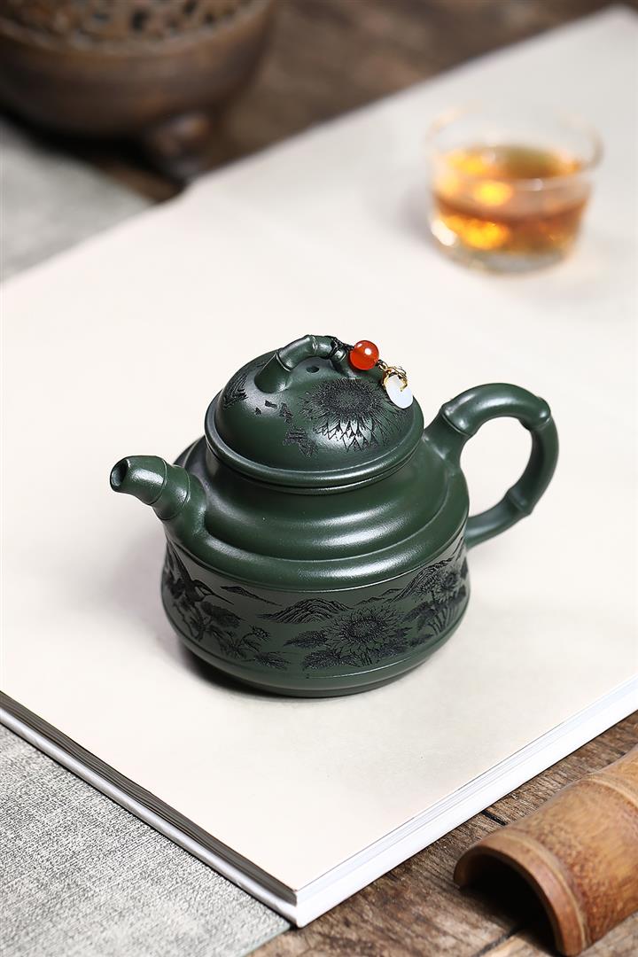 原礦墨綠泥如意山水漢瓦茶壺POT7577