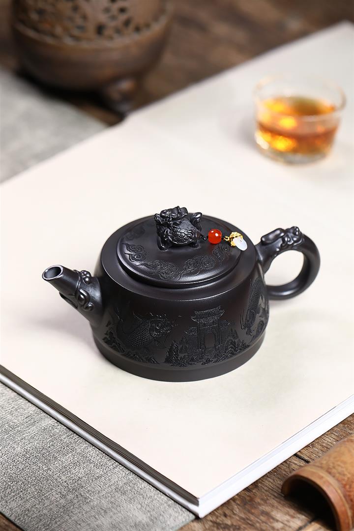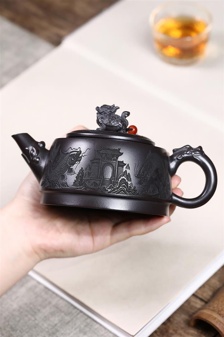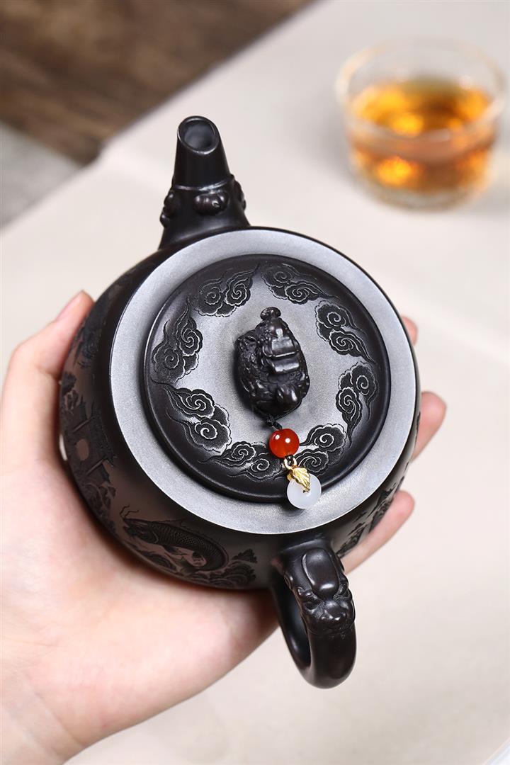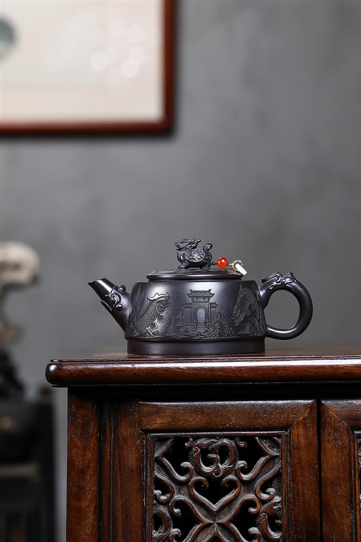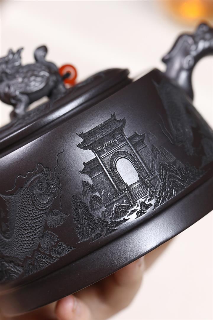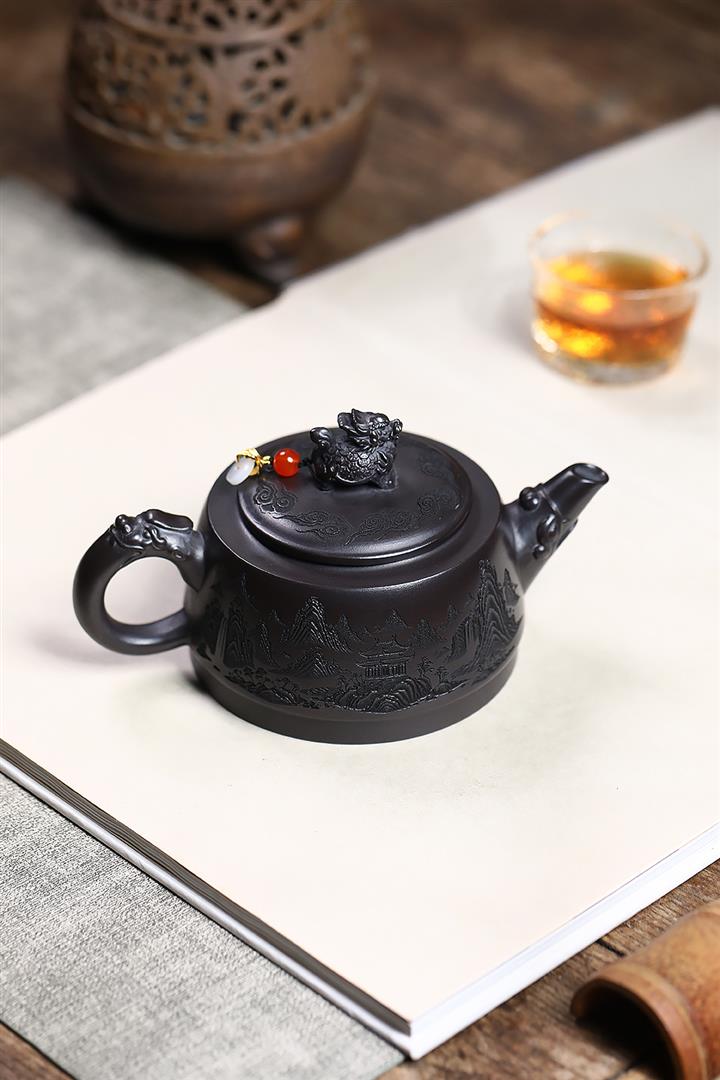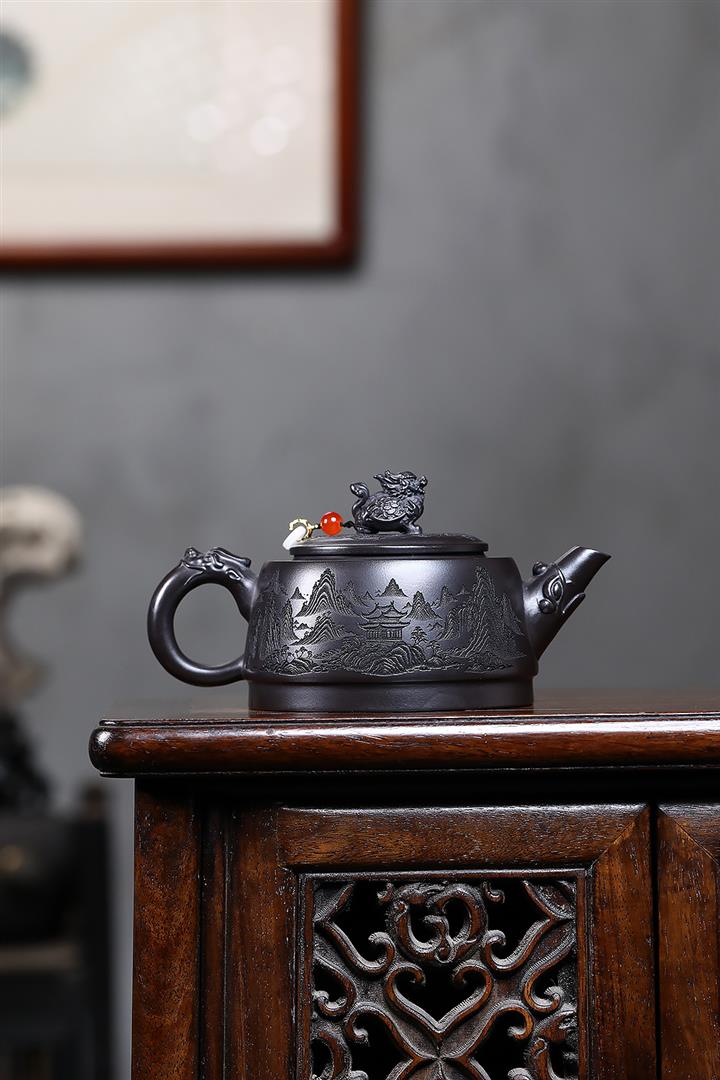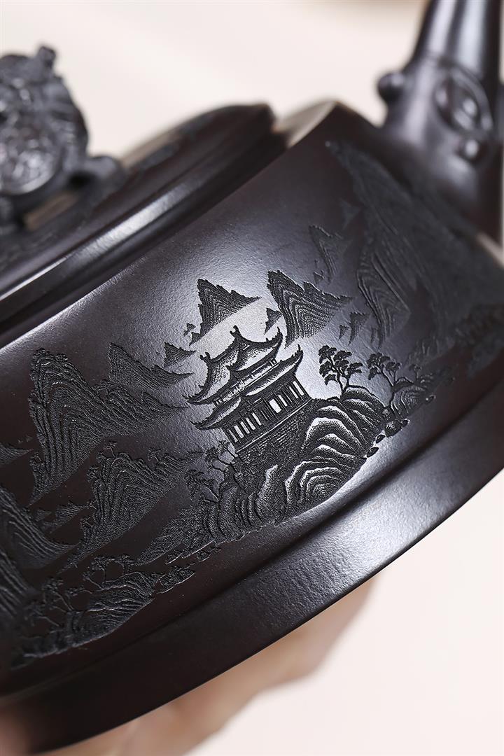 原礦墨綠泥如意山水漢瓦茶壺POT7577