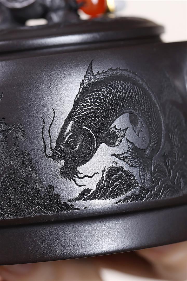 原礦翡翠綠泥魚化龍茶壺POT7575
