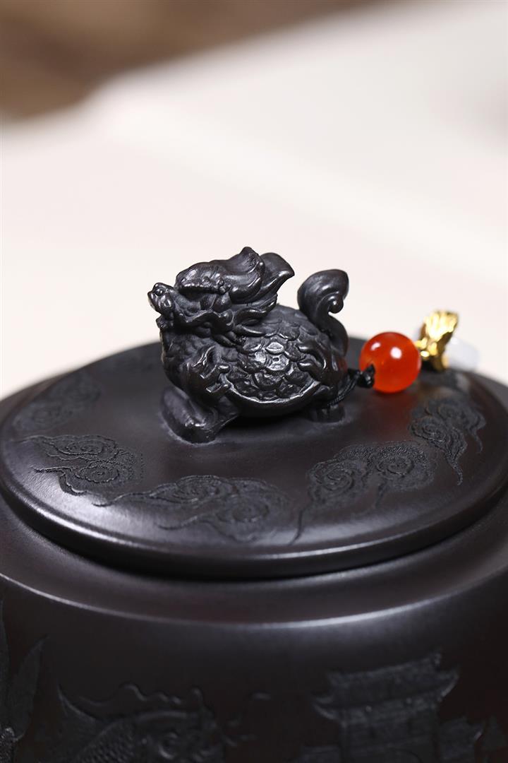 原礦玄鐵石黃龍龜德鐘茶壺POT7572