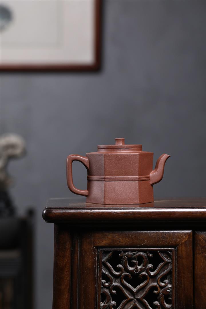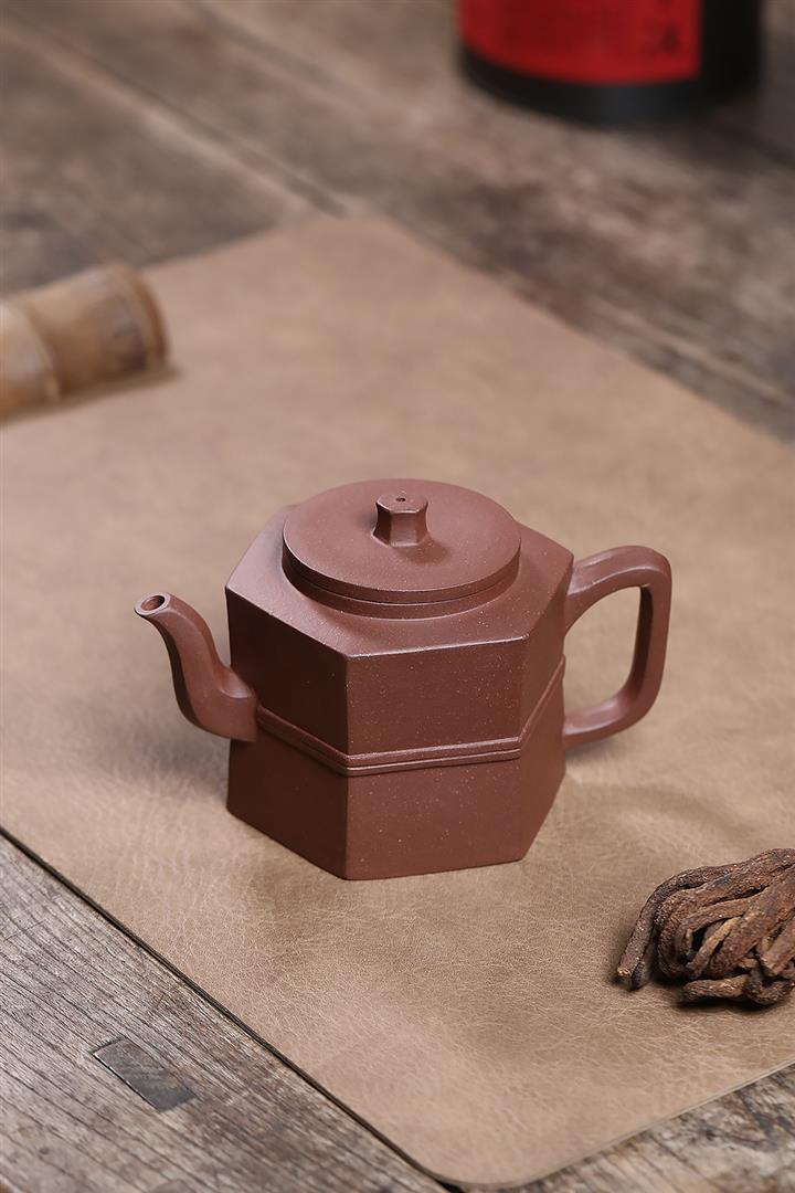 原礦玄鐵石黃六方溪山茶壺POT7579