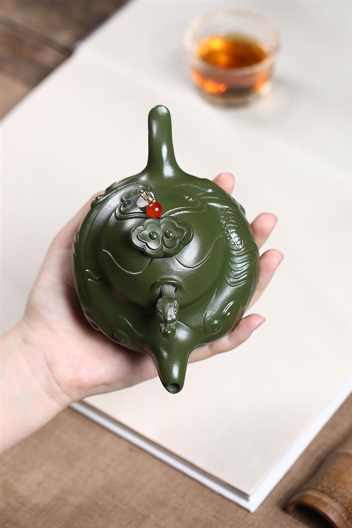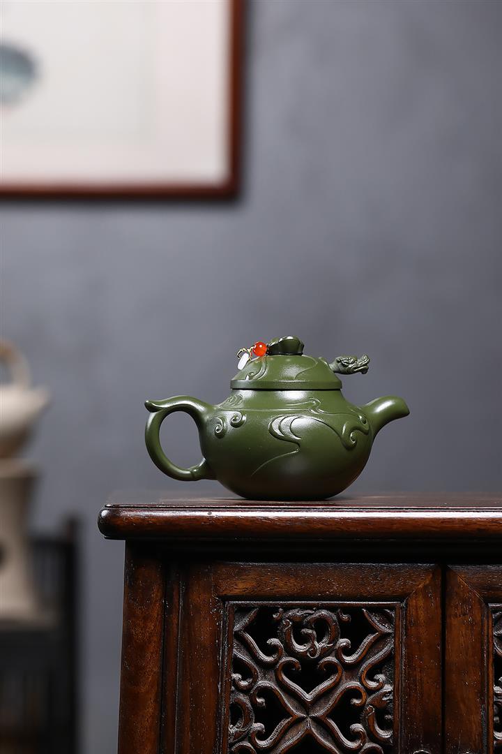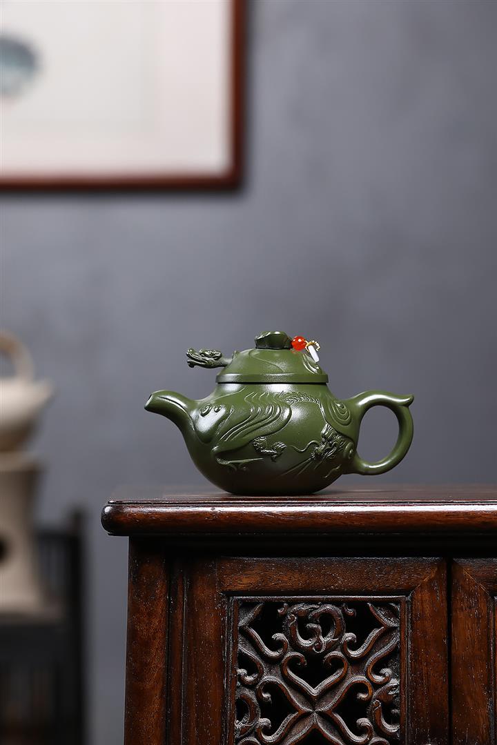 原礦翡翠綠泥魚化龍茶壺POT7575