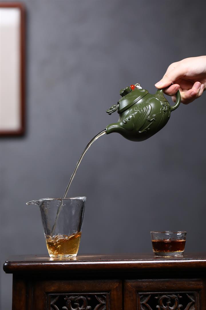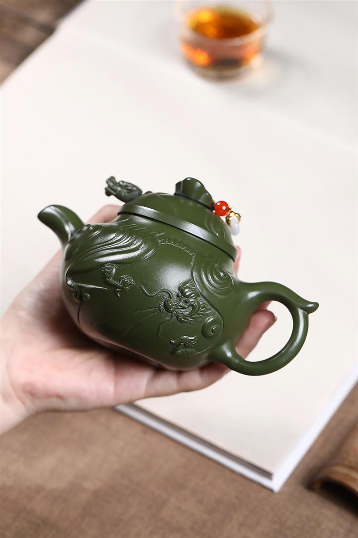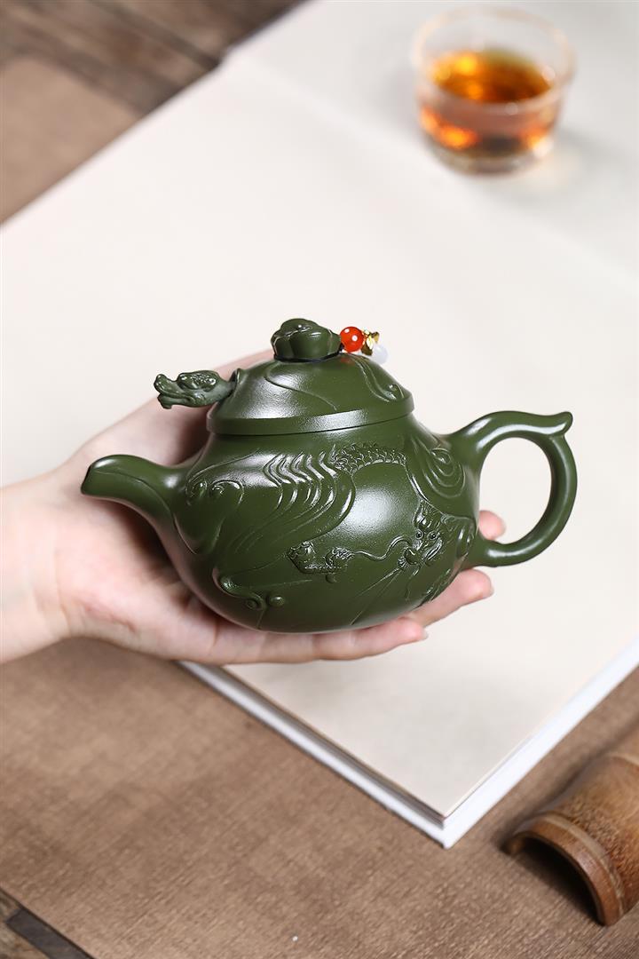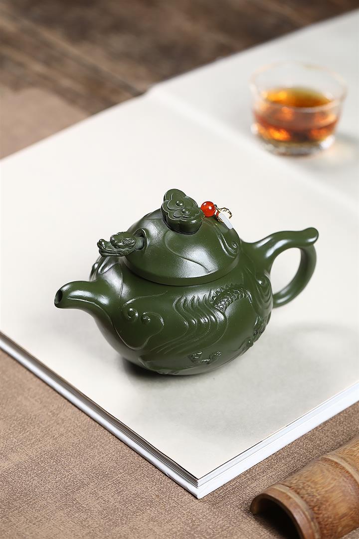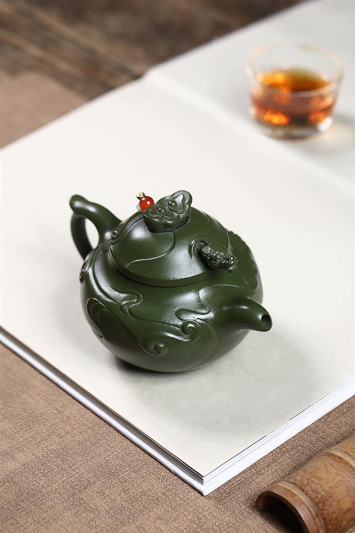 原礦墨綠泥如意山水漢瓦茶壺POT7577