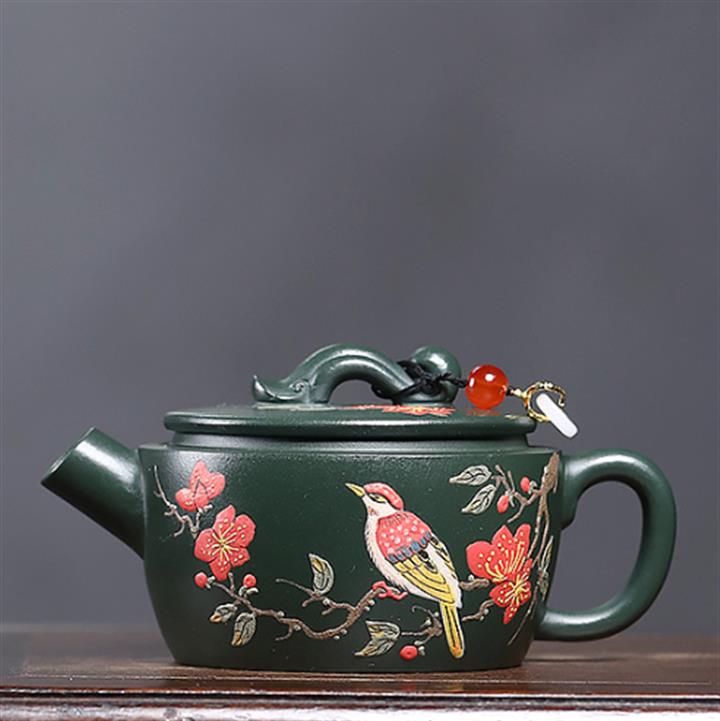 原礦綠泥彩繪如意漢瓦茶壺POT7580
