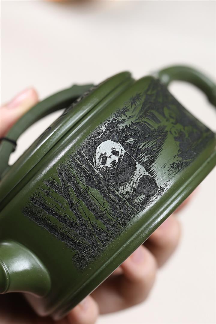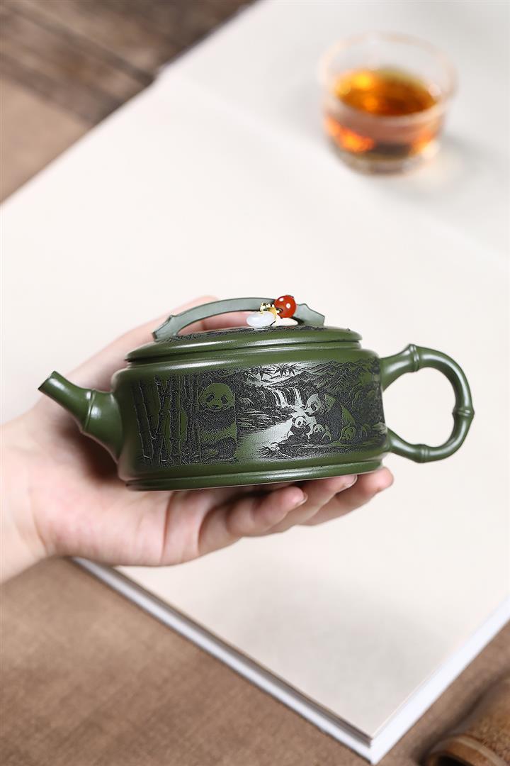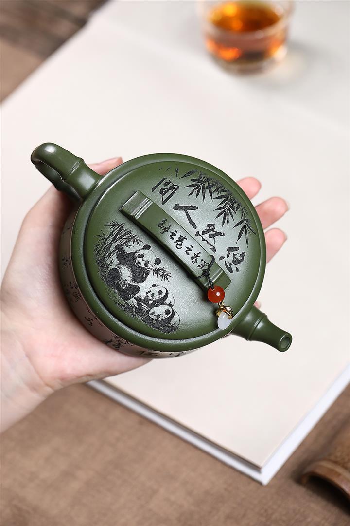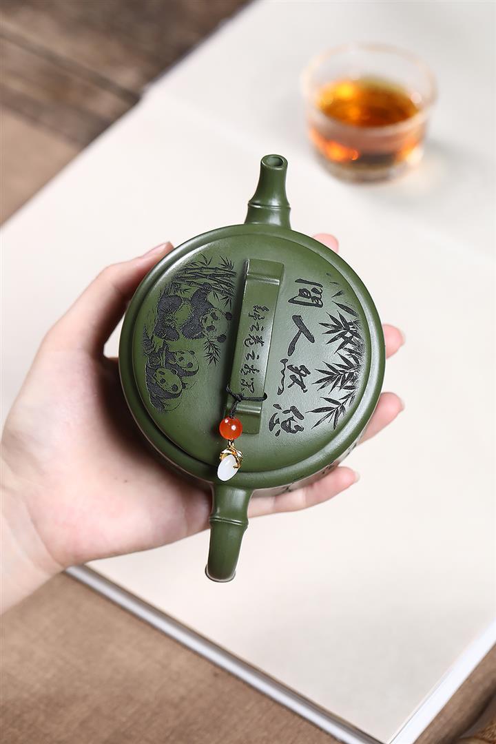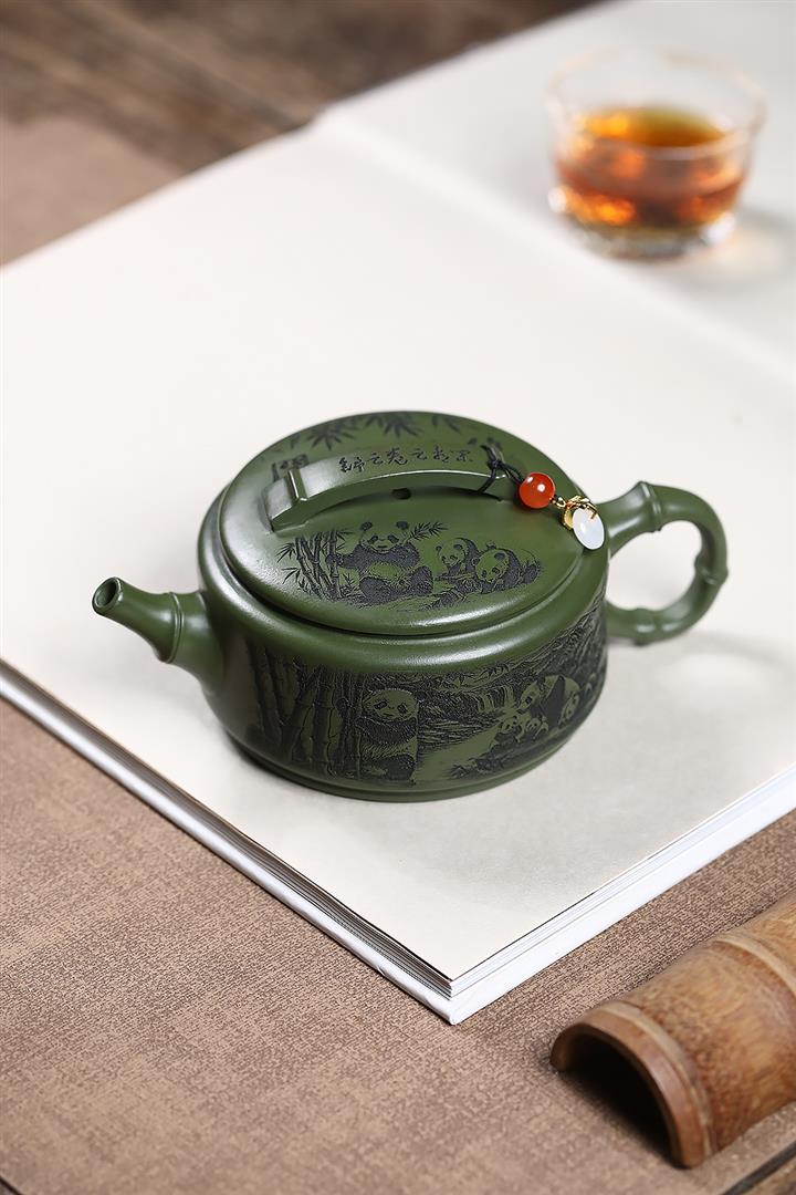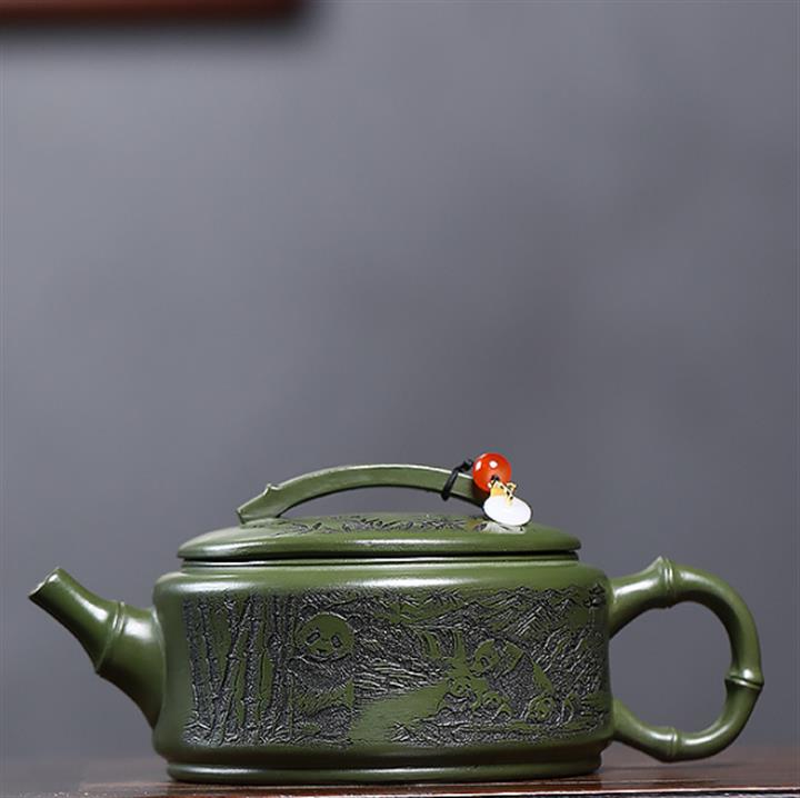 原礦綠泥熊貓竹段漢瓦茶壺POT7576