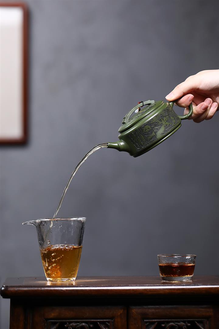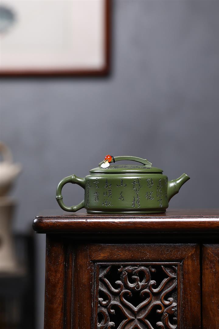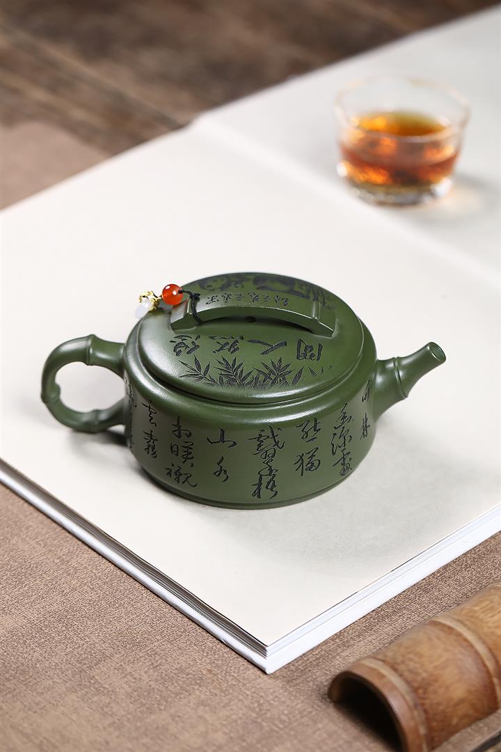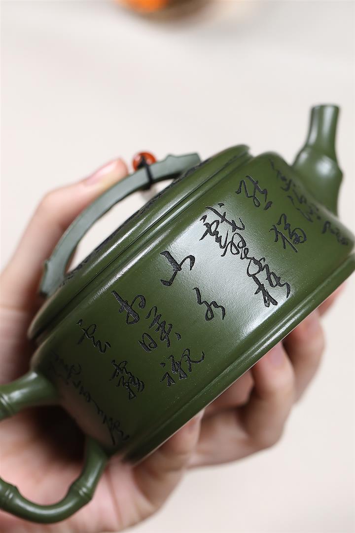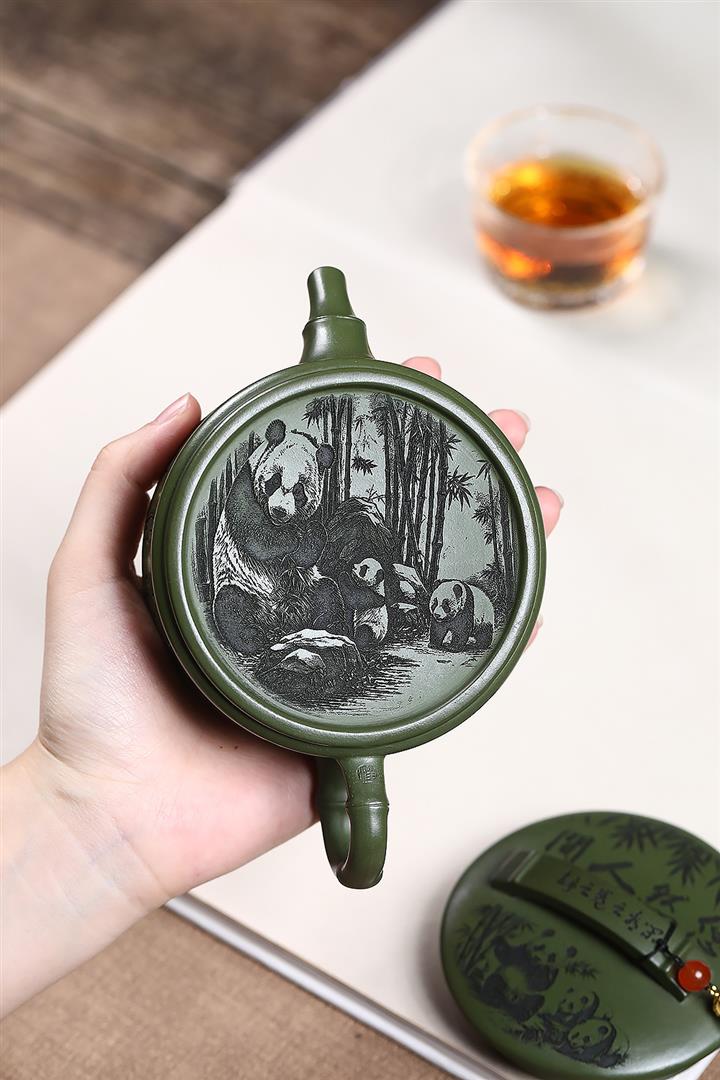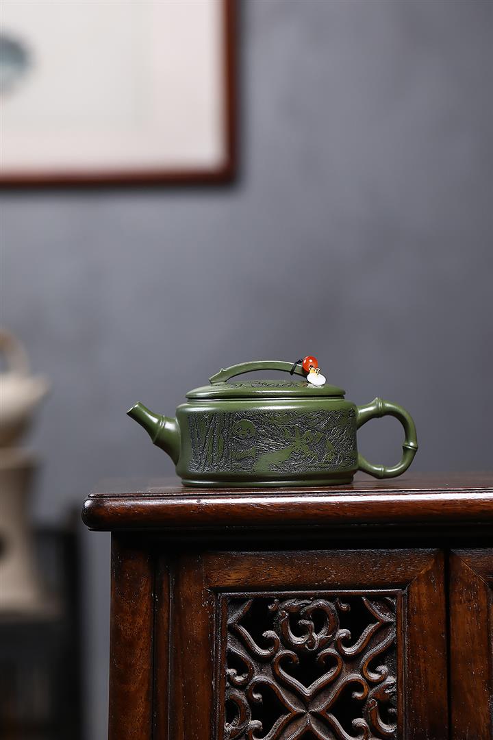 原礦綠泥熊貓竹段漢瓦茶壺POT7576