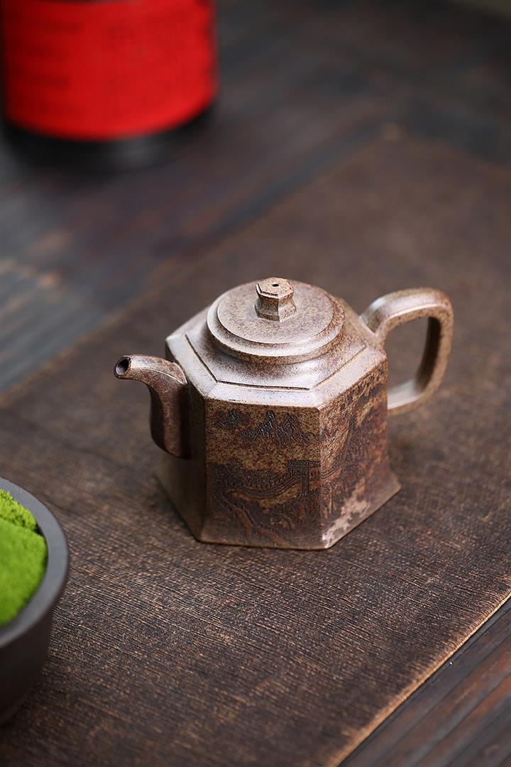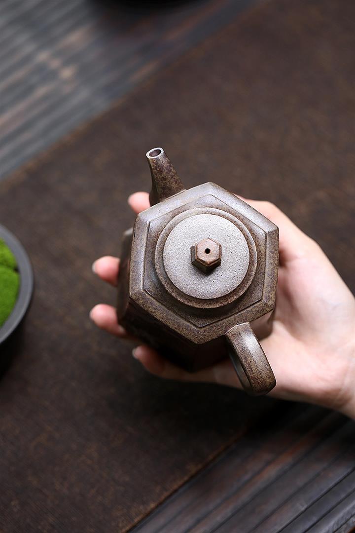 原礦雲霧沈香泥六方金鐘茶壺POT7583