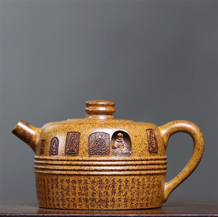 原礦玄鐵石黃刻繪覓香苑曲壺POT7592