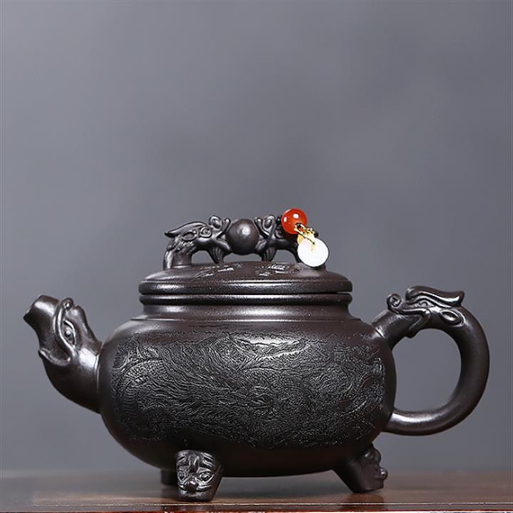 原礦玄鐵石黃雙龍戲珠茶壺POT7591