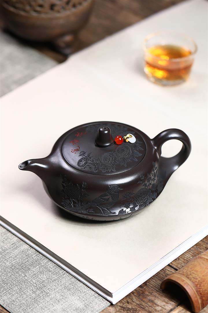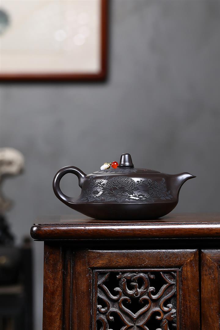 紫砂使用越久,壺身色澤越發光亮照人,氣韻溫雅。紫砂壺長久使用器身會因撫摸擦拭,變得越發溫潤光澤!