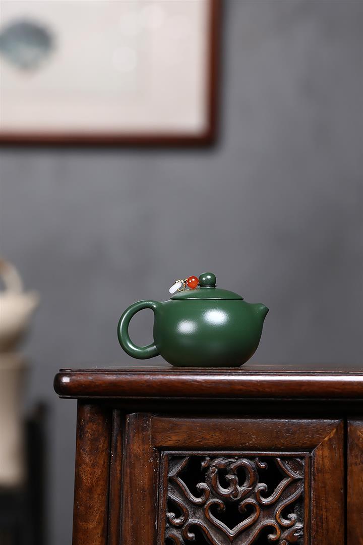 紫砂使用越久,壺身色澤越發光亮照人,氣韻溫雅。紫砂壺長久使用器身會因撫摸擦拭,變得越發溫潤光澤!