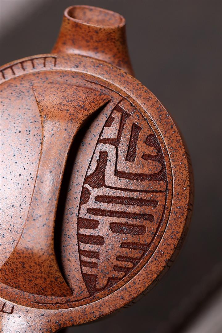 【作品介紹】作品深蘊內涵,做工細致典雅,型用完備,器形端莊穩重,比例協調,結構嚴謹,泥色潤澤。