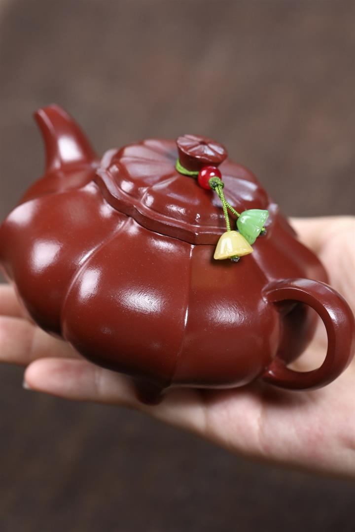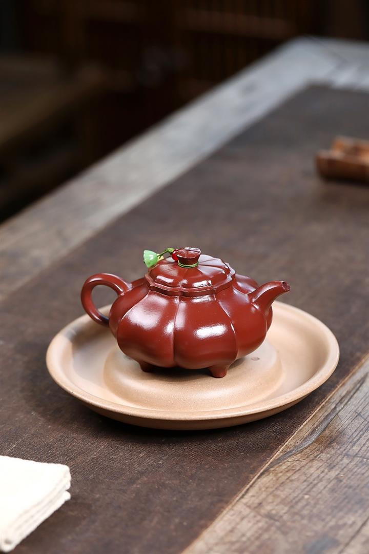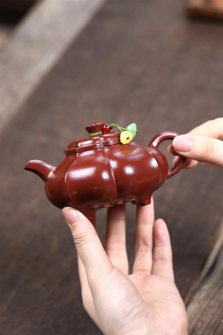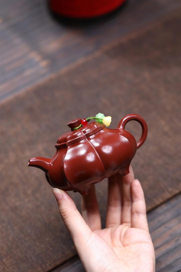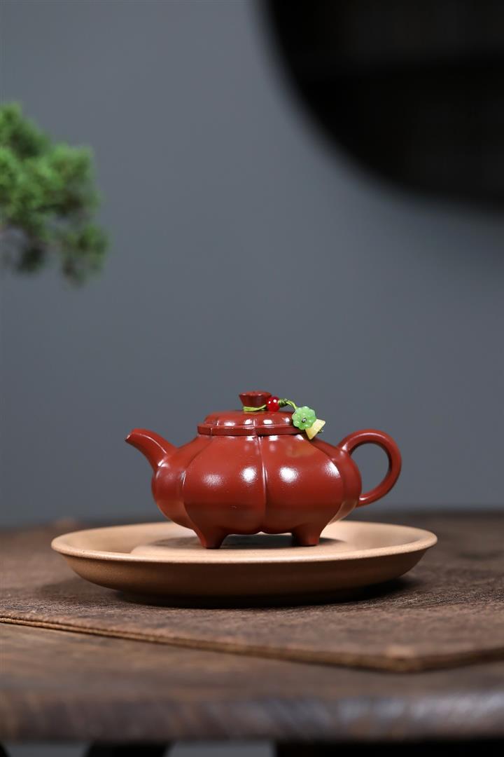 原礦大紅袍五福圖漢瓦茶壺POT7610