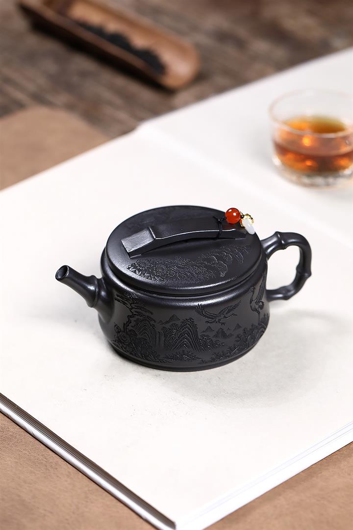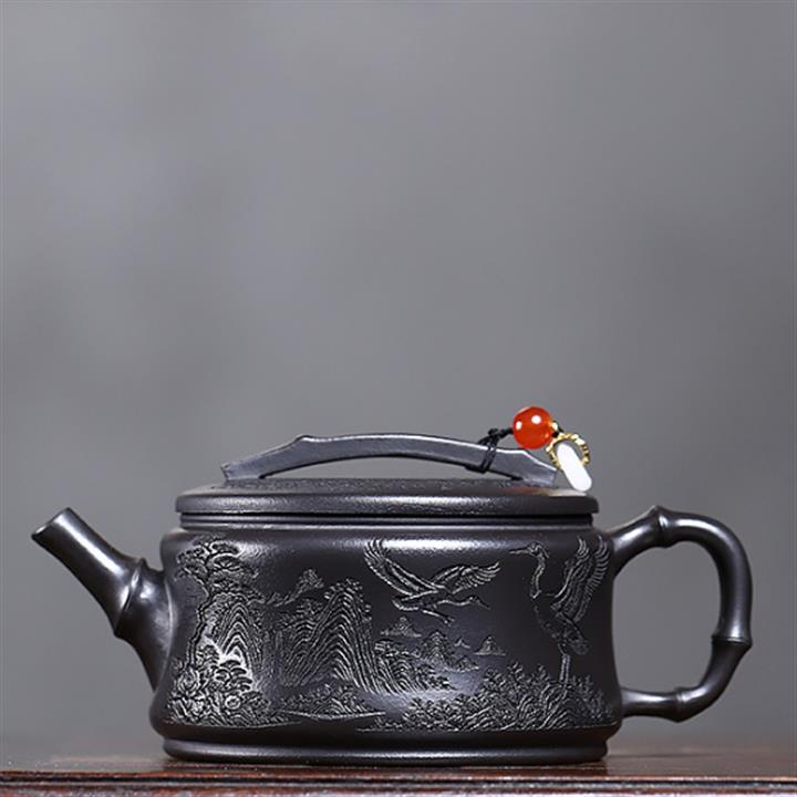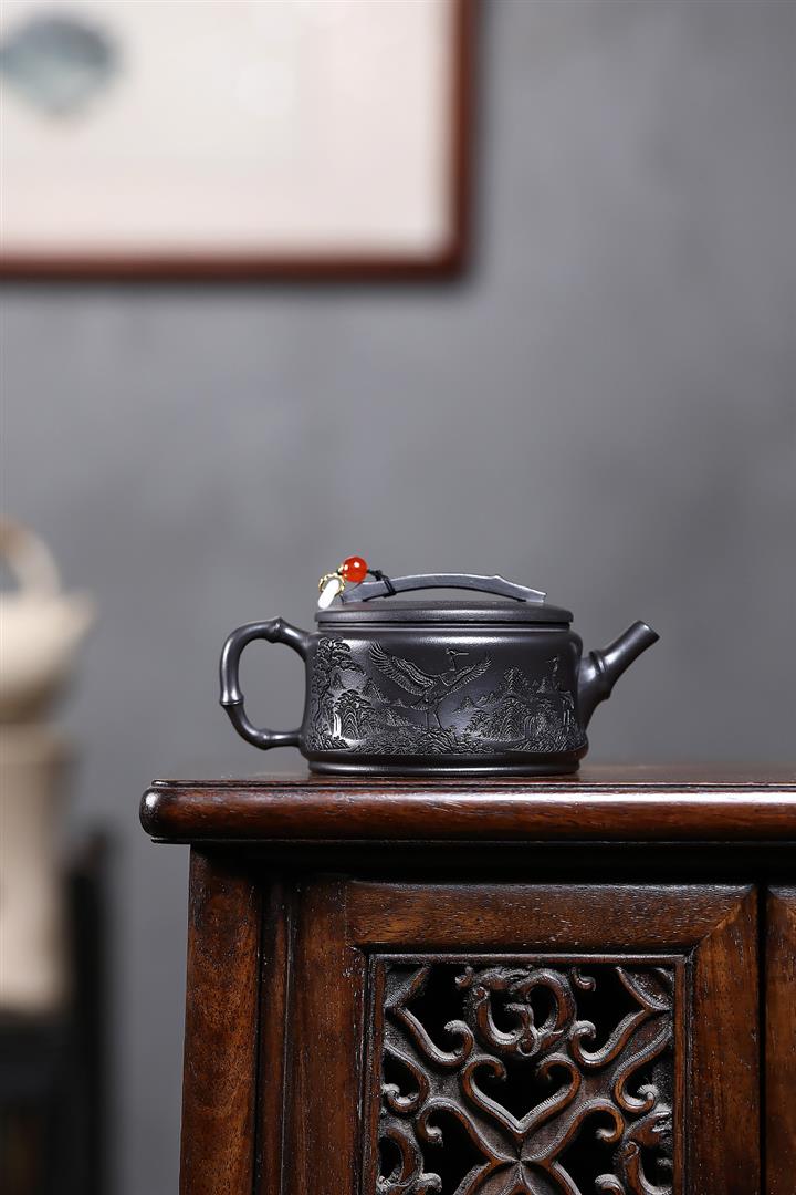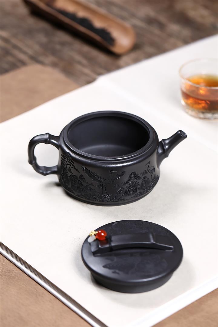 原礦玄鐵石黃仙鶴漢瓦茶壺POT7615