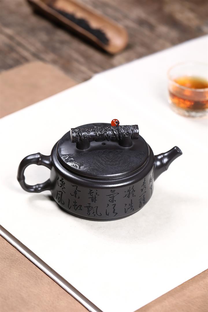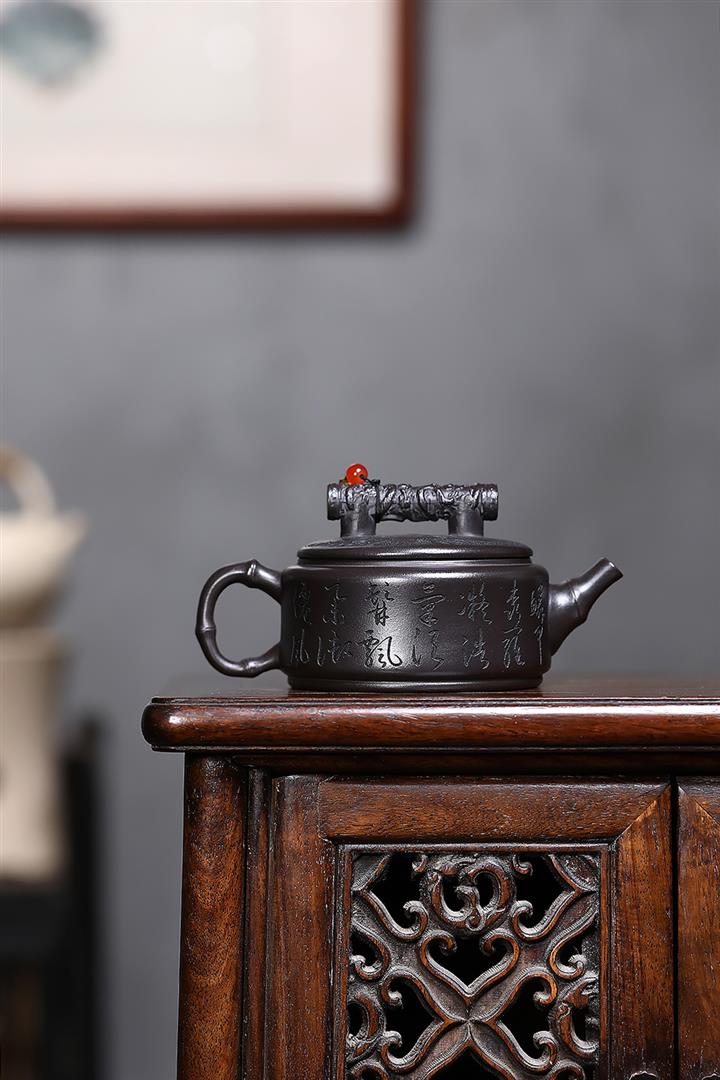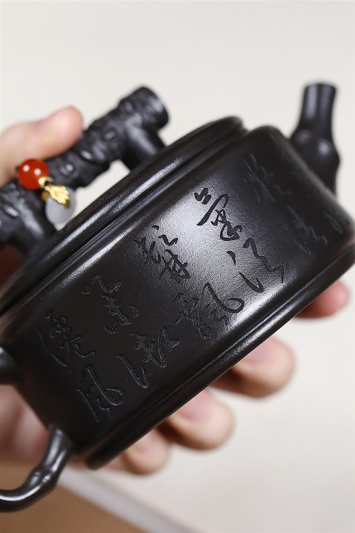 原礦鐵血紅砂刻字寒江茶壺POT7627